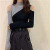 Свитер женский, полуводолазка без бретелек, сексуальный пуловер, трикотаж, тонкий корейский лоскутный топ, модный свитер, осенне-зимний джемпер
