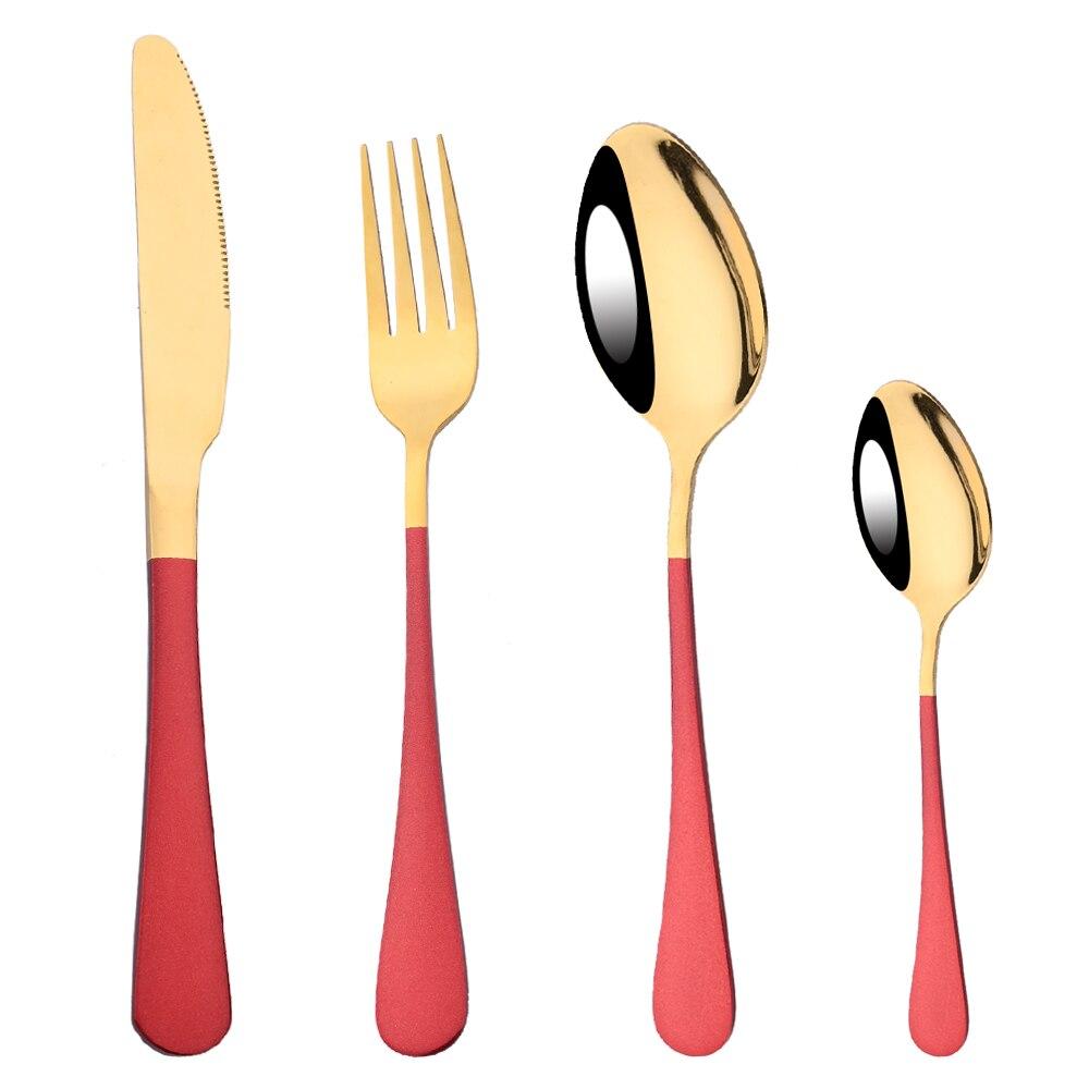В пакет включено: 1Pc Ужин Нож + 1Pc Столовая вилка + 1Pc Столовая ложка + 1Pc Чайная ложка