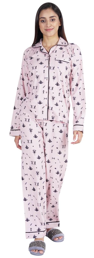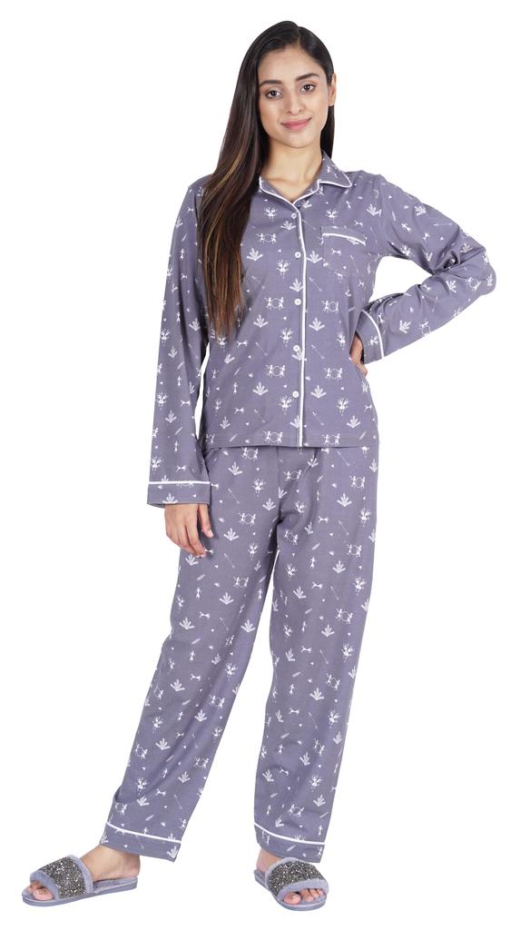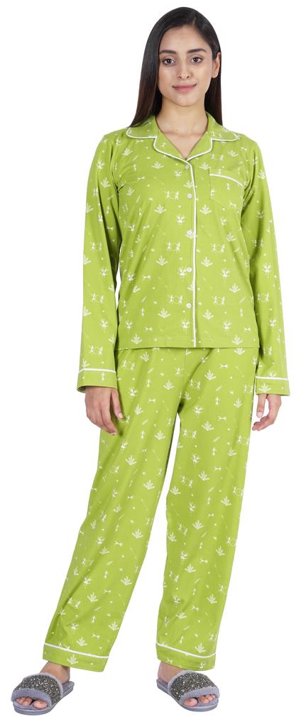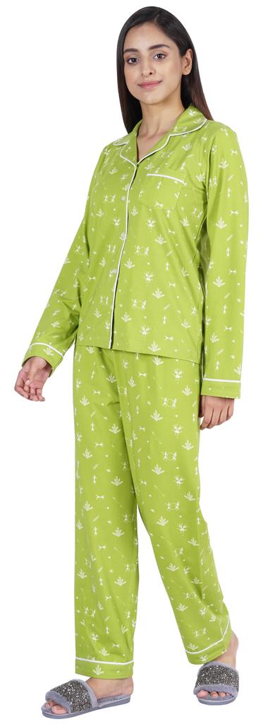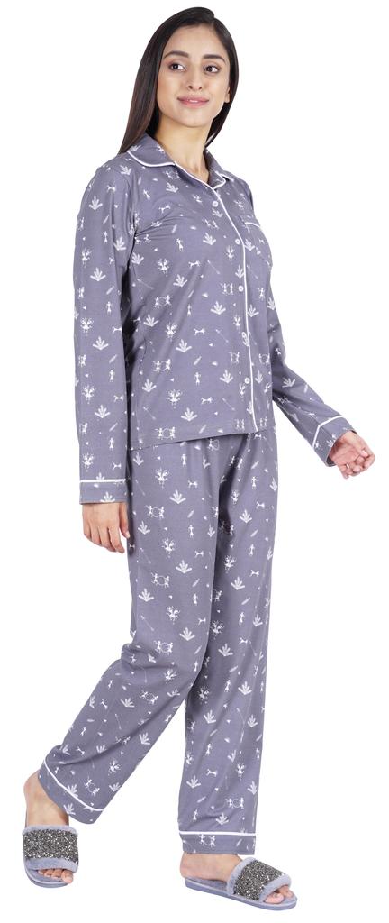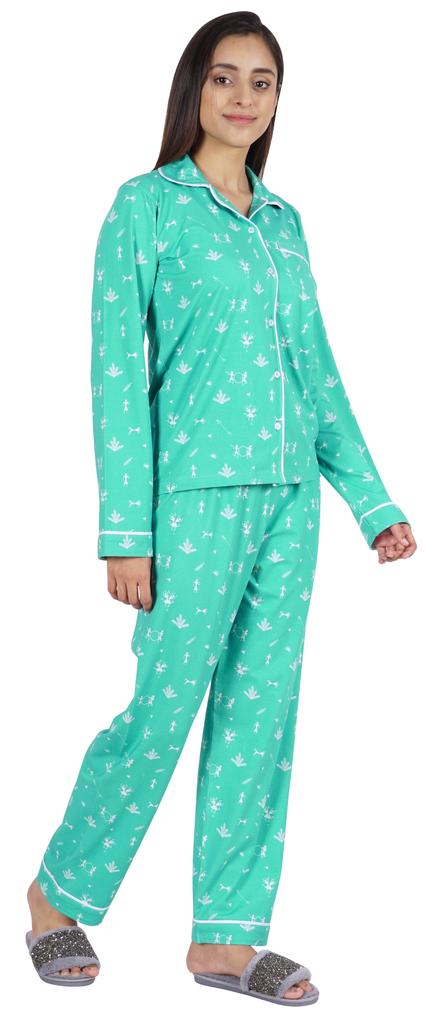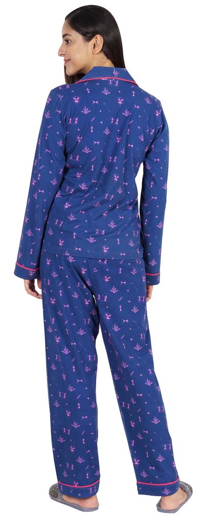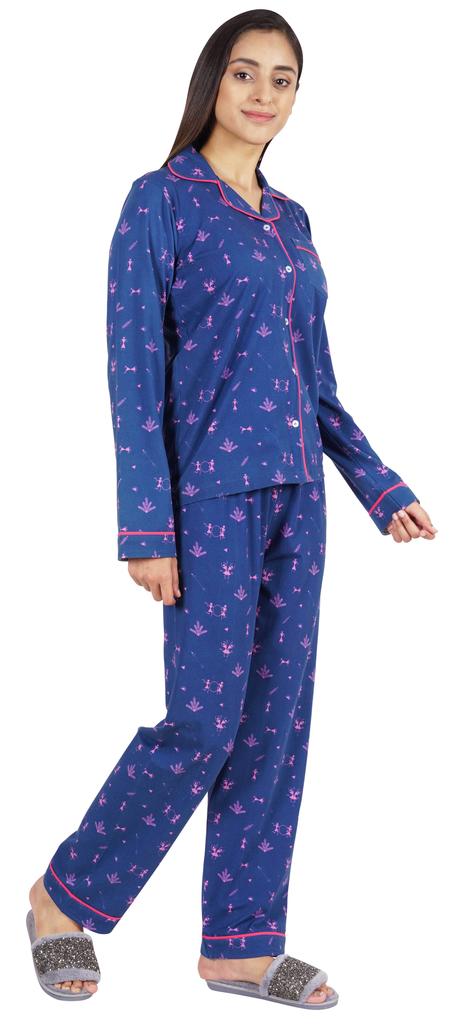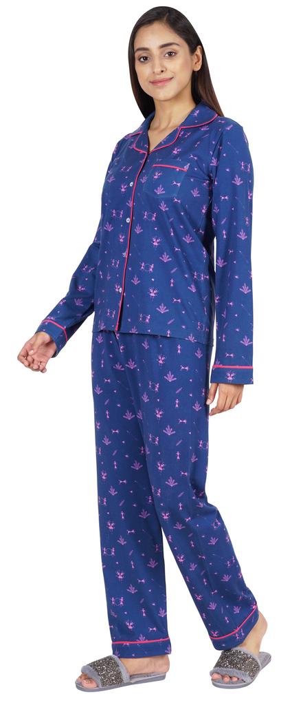 Хотите инвестировать в то, что превратит ваш сон в спокойный и расслабляющий день, тогда вы должны инвестировать в эту красивую пижаму из хлопкового джерси из 2 предметов от Inkmeso.. Очень удобный верх и низ с принтом, отложной воротник, передняя планка на пуговицах, маленький накладной карман, полные рукава, детализированная окантовка, последняя, но не менее важная прямая пижама.