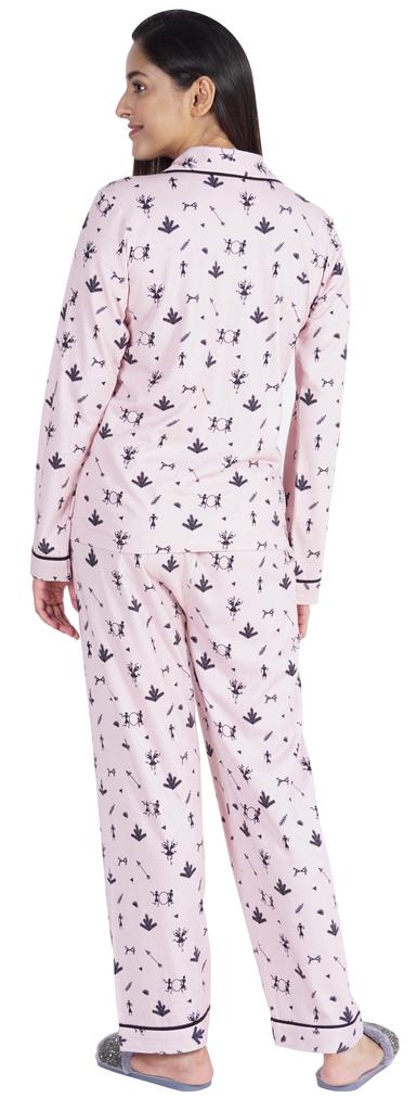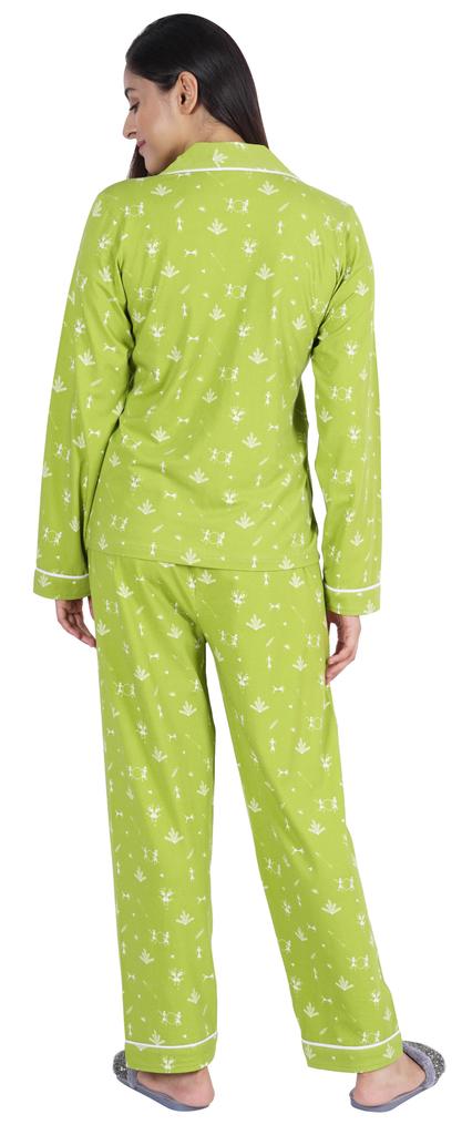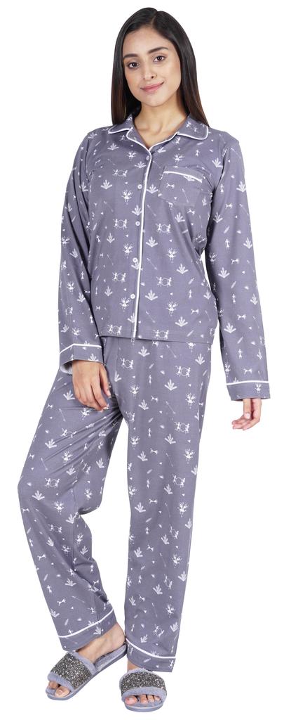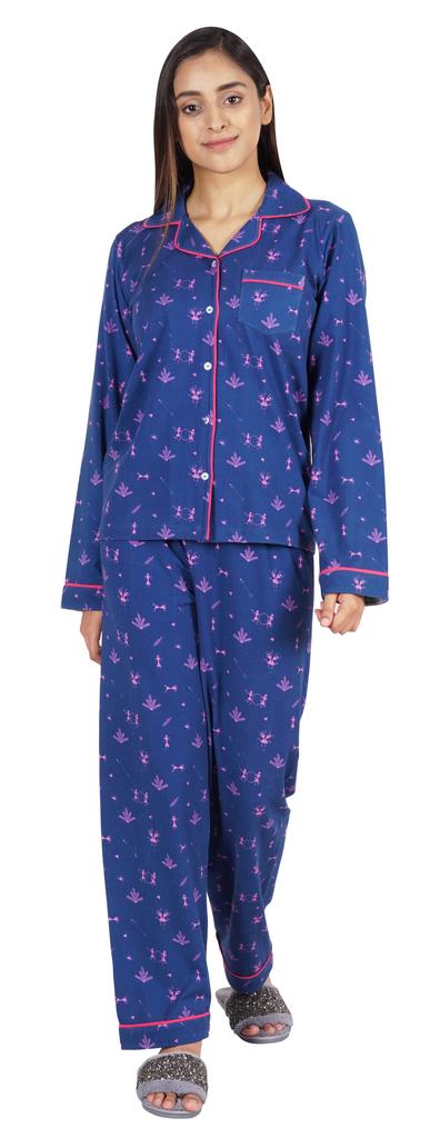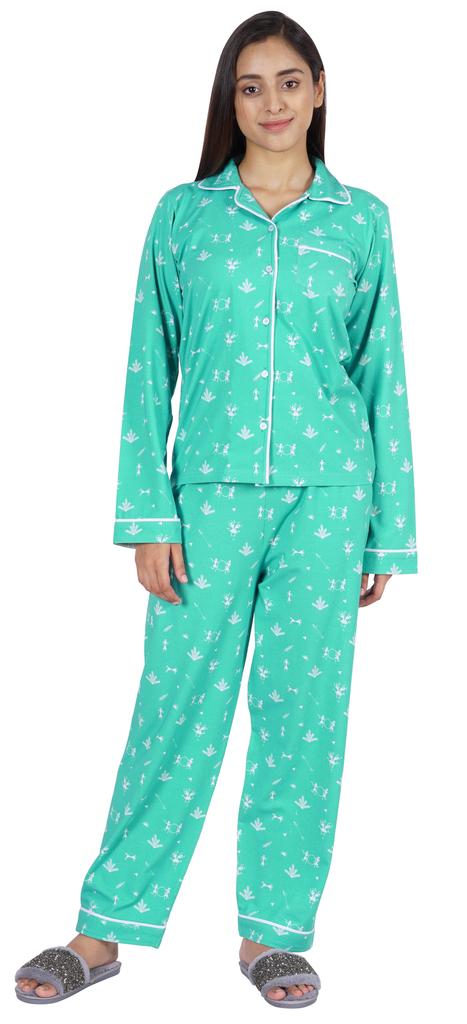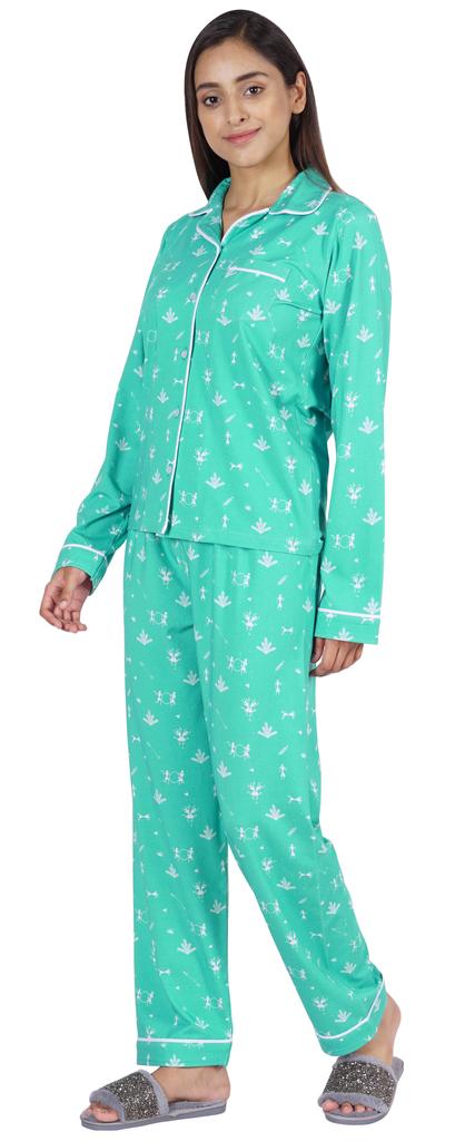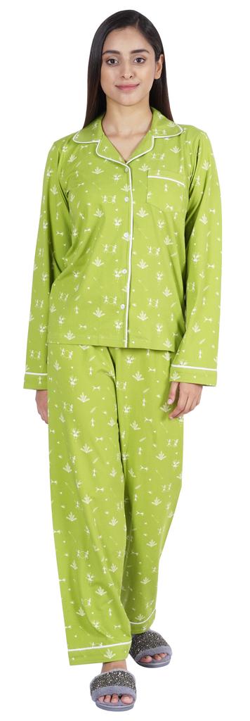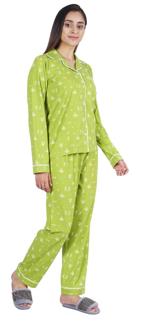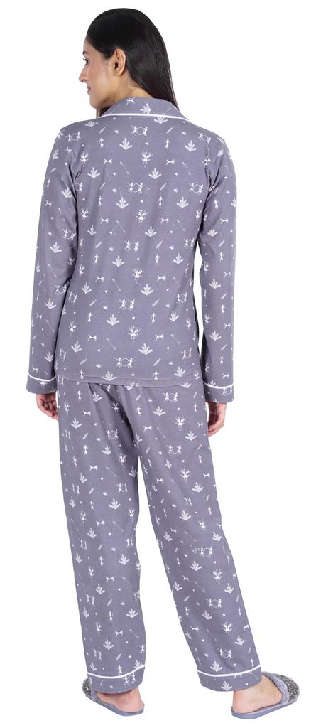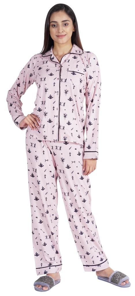 Хотите инвестировать в то, что превратит ваш сон в спокойный и расслабляющий день, тогда вы должны инвестировать в эту красивую пижаму из хлопкового джерси из 2 предметов от Inkmeso.. Очень удобный верх и низ с принтом, отложной воротник, передняя планка на пуговицах, маленький накладной карман, полные рукава, детализированная окантовка, последняя, но не менее важная прямая пижама.