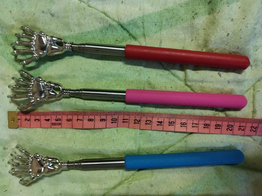 Телескопическая чесалка. Чешит 👍😁 Размер: (в раздвинутом виде) 56 см, вместо заявленных 61 см В сложенном: 21 см, вместо заявленных 24 см. Хотя это на эффект от почухона🙂не влияет, но осадочек есть. Но так, если в общем, нормально. Спасибо всем и Джуму🌹