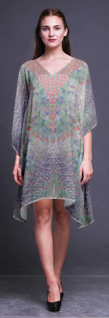 Phagun Пляжный кафтан бикини прикрыть женское платье миди короткий кафтан-4X-5X