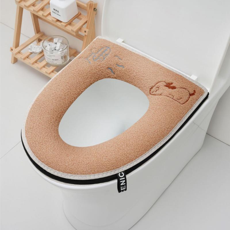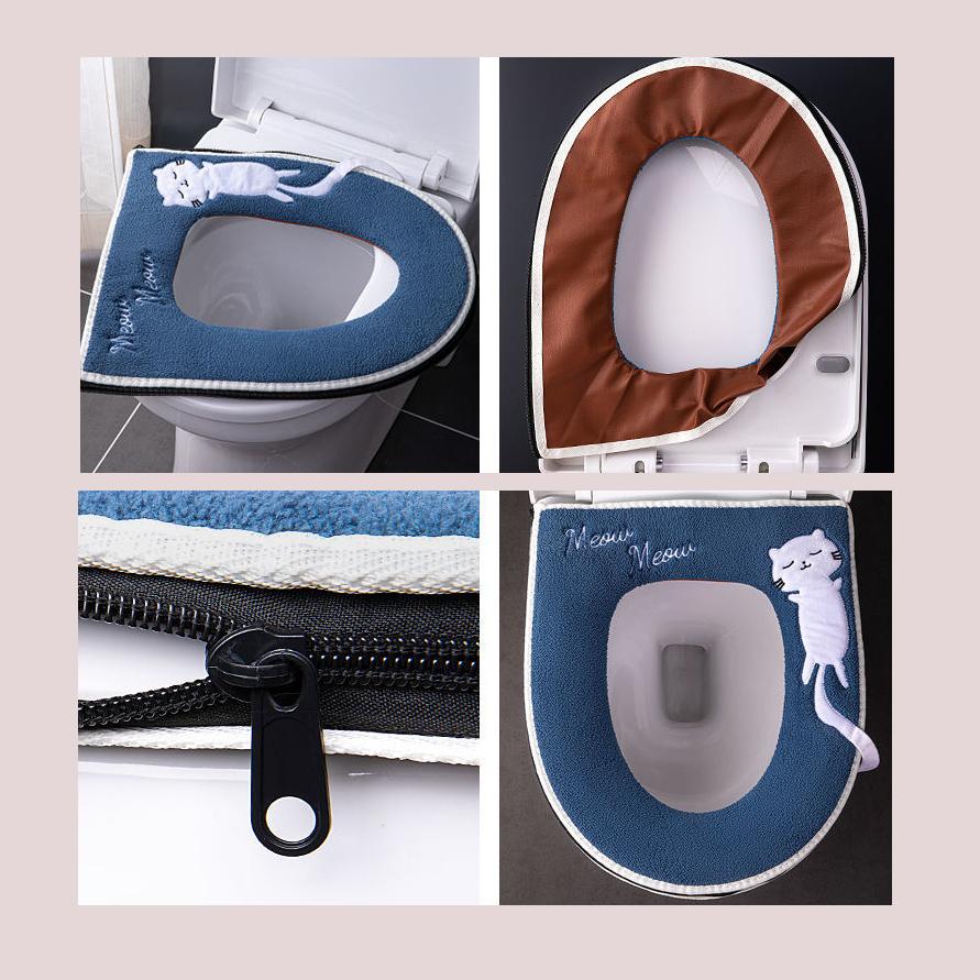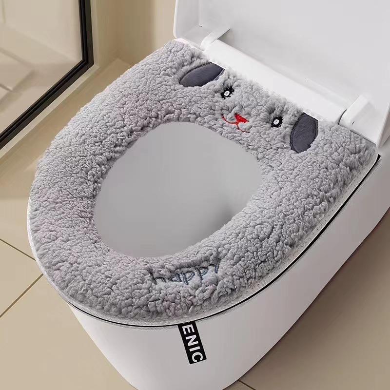 Универсальный чехол для унитаза, круглая подушка для унитаза, коврик для ванной комнаты, коврик для унитаза, зимний толстый теплый моющийся кот, мультфильм, милые чехлы для унитаза