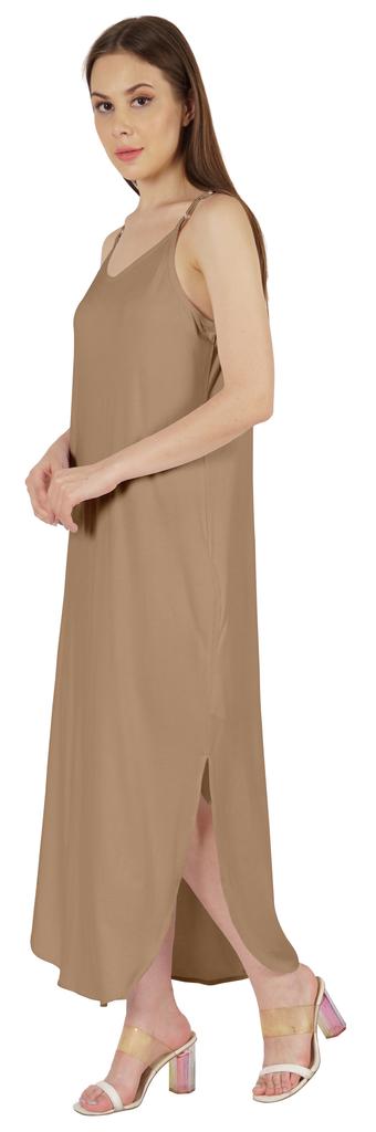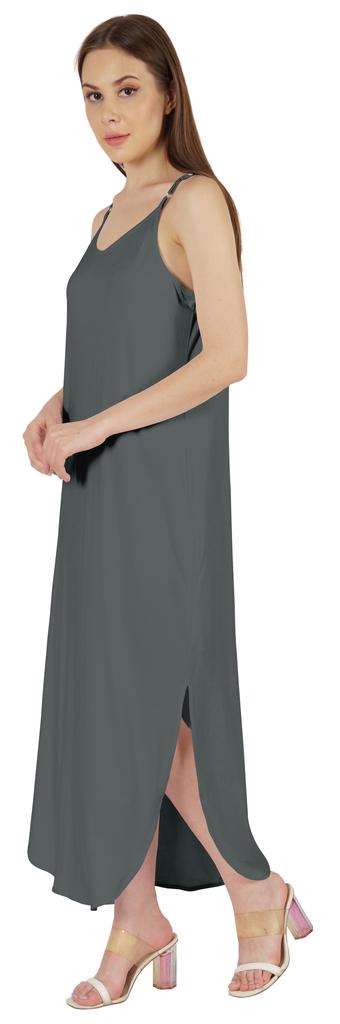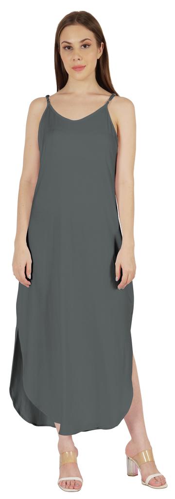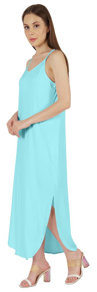 * Характеристики: одноцветное изделие, круглый вырез, регулируемый ремешок для спагетти, разрез по бокам, длина до щиколотки, круглый низ.