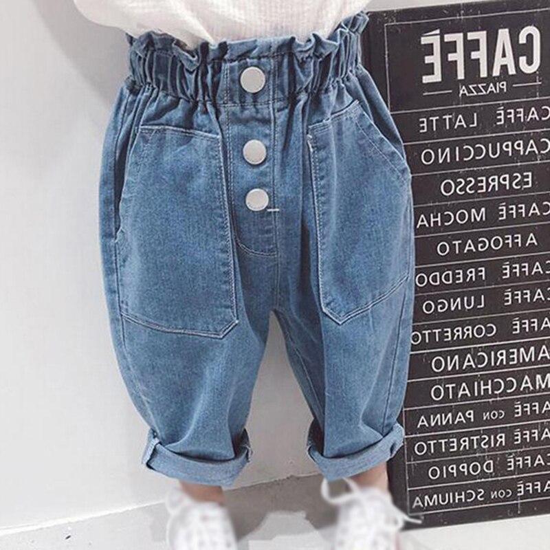 Осенние джинсы для маленьких девочек, повседневные широкие брюки с высокой талией, свободные джинсовые джинсы, мешковатые джинсовые брюки с карманами, От 3 до 8 лет — купить товар онлайн с бесплатной доставкой по всему миру!