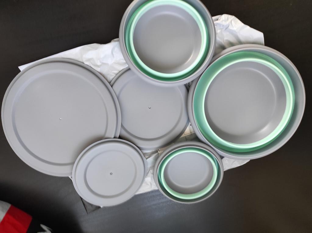Посылка шла месяц. Спасибо Джуму, пришло всё в одном заказе.Удобные силиконовые тарелки с крышками.В дорогу ,то что нужно.