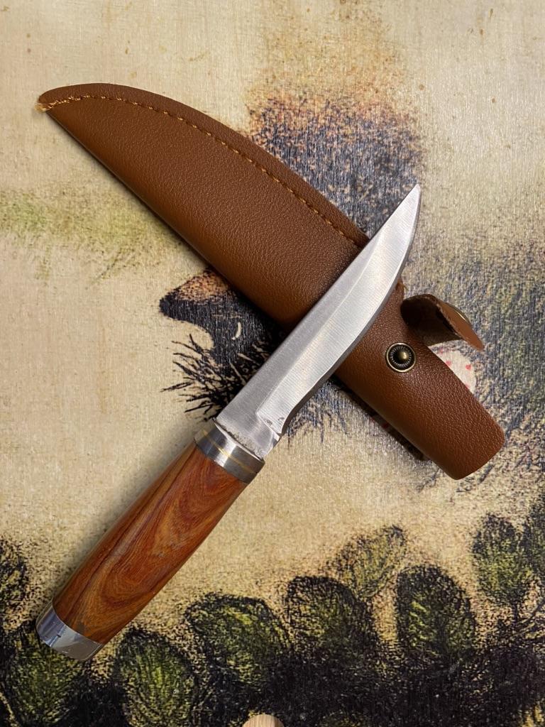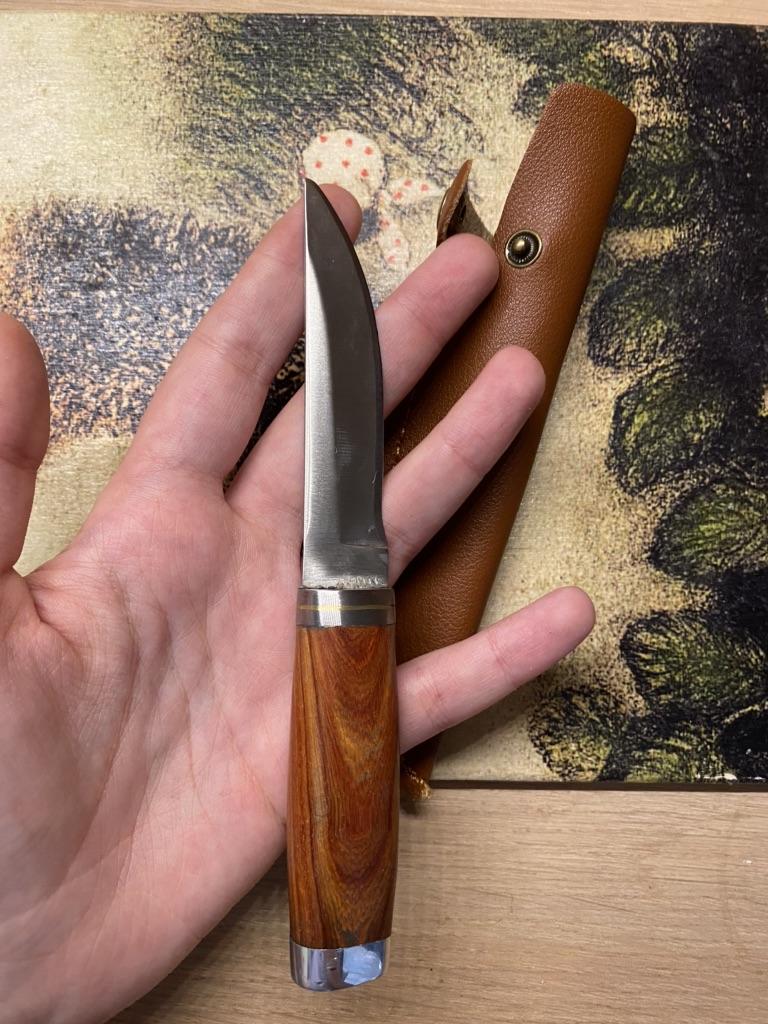 Компактный нож для походов или домашнего использования. Мне понравился нож тем, что размер небольшой и он в чехле. С ним можно в лес ходить за грибами, в походы, на дачу брать(мало места занимает),подарить кому-нибудь или просто дома использовать👍 Вещь вообще каждому нужная и качество меня порадовало. Нож приходит очень острым, лезвие не кривое, толстое достаточно и нож хорошо лежит в руке. В мою руку вообще идеально подходит) Ну и приятный бонус, конечно же, это чехольчик)очень удобно. Доставка до МО почтой России заняла четыре недели. Трек отслеживался.