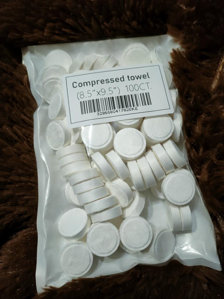 100 штук небольших полотенец. Да ещё и за рубль. Пришли довольно быстро, в пакете с другим заказом. Удобно: размочил и вот уже из крошечной таблетки у тебя небольшое полотенце. Спасибо, прикольно.