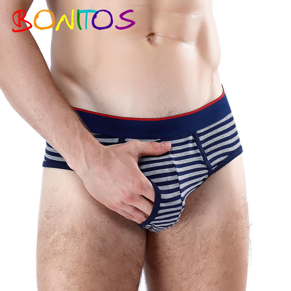 BONITOS 1 шт., мужские трусы в полоску с открытием, мужские хлопковые трусы с принтом, сексуальные мужские трусы