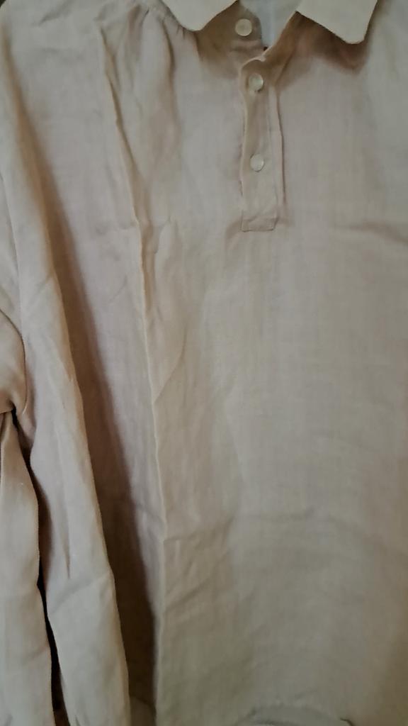 Очень нравится мне Johnature, все натуральное, прекрасного качества. Цвет не розовый, как мы его представляем, а скорее персиковый с бежевым светлый. Размер подошёл мои параметры ОГ 98 ОБ 108. На мне свободная, как и хотелось. Единственно, очень широкая горловина, шея у меня тонкая, воротник смотрится нелепо. Придётся пуговицу верхнюю не застегивать. Длина при моем росте 162 на 15 см ниже талии. В остальном все устраивает.