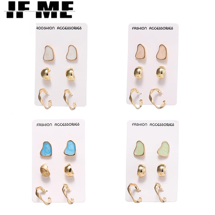 IF ME 6 шт./компл. корейские красочные геометрические серьги-гвоздики модные золотые серьги женские ювелирные аксессуары — купить товар онлайн с бесплатной доставкой по всему миру!