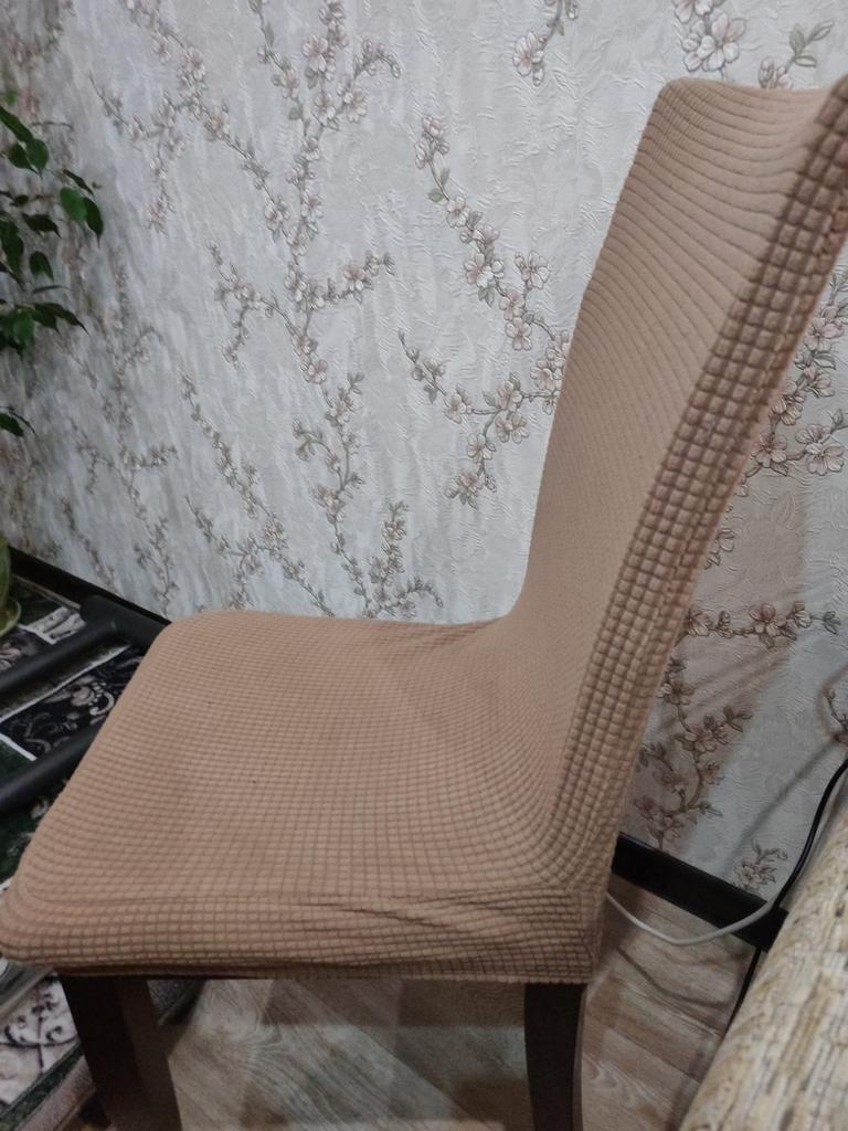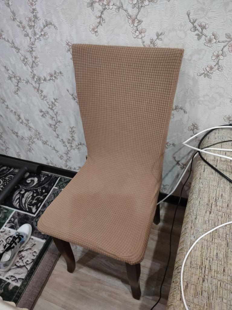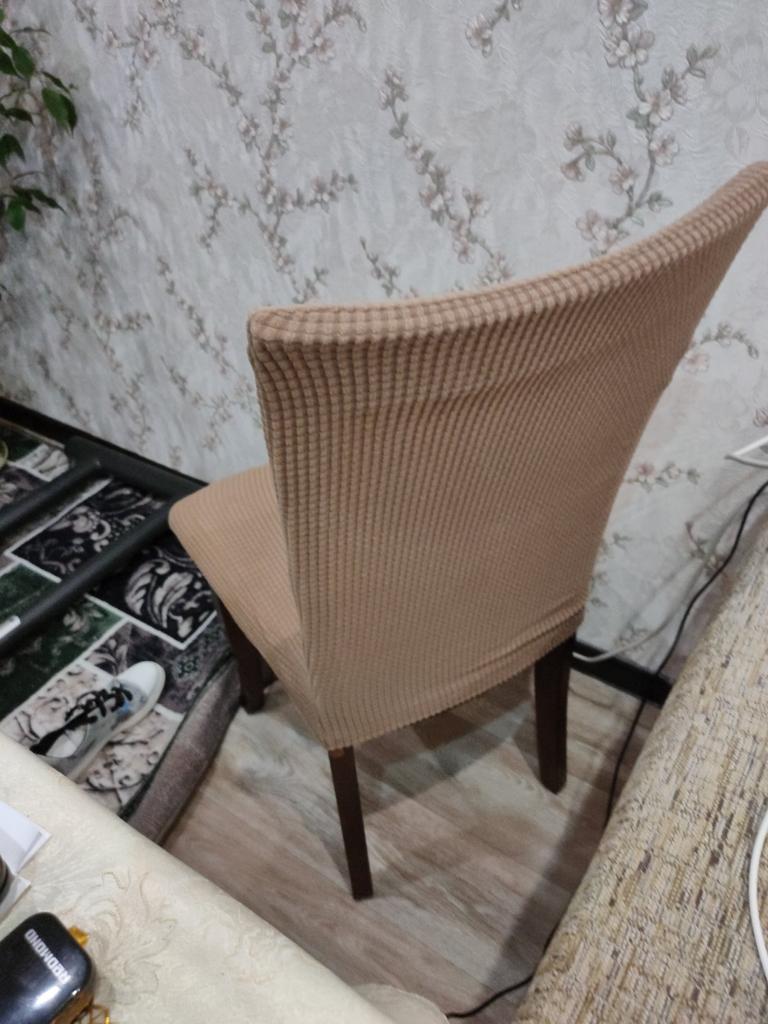 Хороший чехол, скрыл ремонтированную часть спинки стула. Не пять звёзд за то, что не продумали нижнюю часть, внизу не ровно ложится, а натянуто. Ткань приятная, мягкая, цвет тоже понравился.