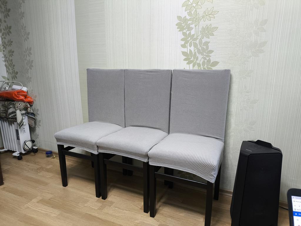 Не плохие чехлы, один цехол немного с браком, прошит мимо ткани, шов разошёлся. По размерам разные , один меньше, другой больше. На стулья подошли, разница в размерах не сильно заметна, при использовании надеюсь примут форму стула как надо.