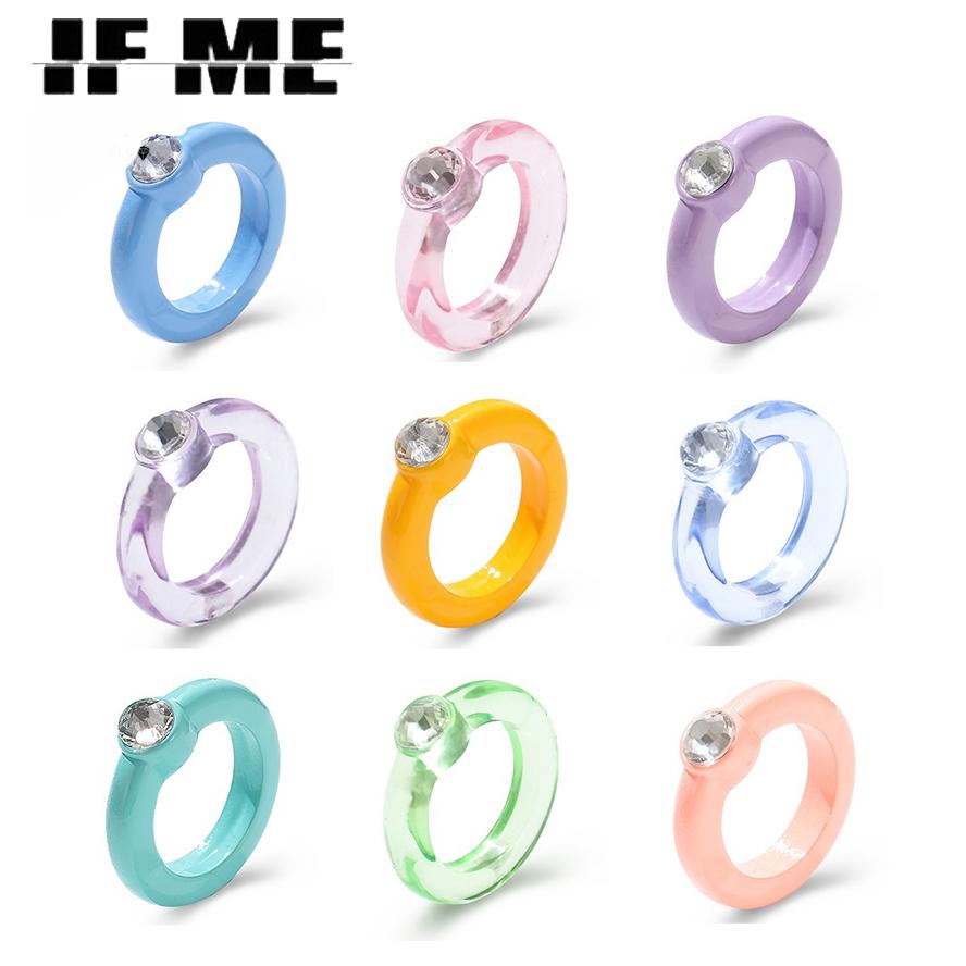 IF ME корейские прозрачные акриловые кольца с бриллиантами модные яркие цвета кольцо на палец женские ювелирные аксессуары подарок — купить товар онлайн с бесплатной доставкой по всему миру!