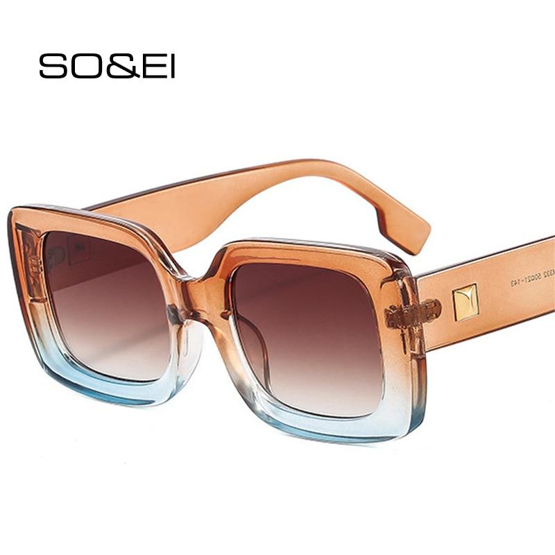 SO & EI модные квадратные солнцезащитные очки женские оттенки UV400 ретро заклепки украшения мужские трендовые солнцезащитные очки