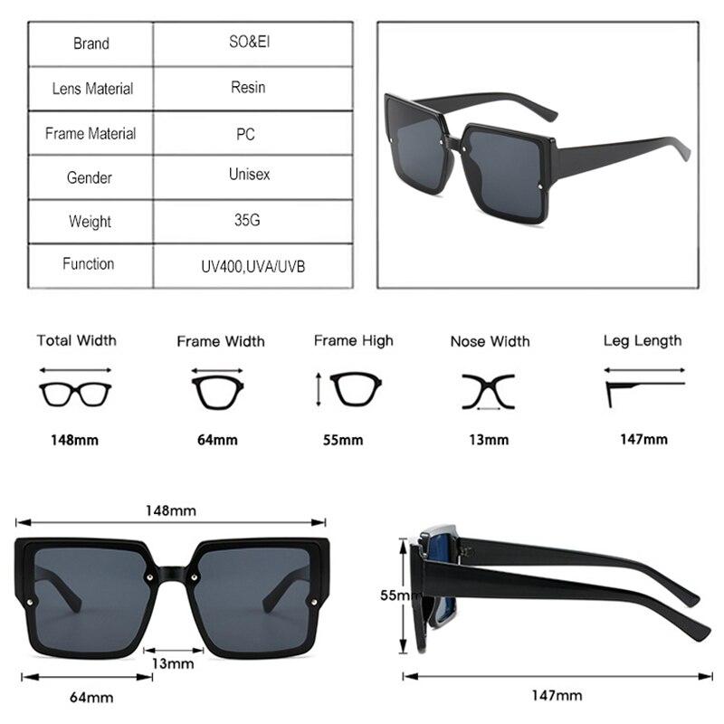 SO & EI модные большие квадратные солнцезащитные очки женские ретро заклепки украшения оттенки UV400 трендовые градиентные мужские синие красные солнцезащитные очки