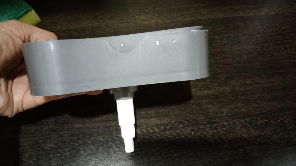 Пластик плотный.Губка шла в комплекте.Я налила в дозатор самодельное жидкое хоз. мыло-работает без нареканий.Если что ,позже дополню отзыв. Дополняю отзыв: спустя 2 недели трубка подаю́щая мыло из ёмкости западает-не до конца распределяется при нажатии и соответственно меньше по объёму выдаёт порцию мыла.Нажимать приходится грубо говоря не 1 раз ,а 2.😖 Но я думаю,что этой маленькой капельки всё равно хватит если у вас будет заводское средство типа фэйри или aos с хорошей пеной. Меня спрашивали в комментариях про самодельное жидкое мыло -отвечаю: Моё мыло первоначально светлое,поэтому и итоговый цвет тоже светлый.Делю кусок твёрдого хоз. мыла произвольно ,но как правило частей на 6(1 продольный разрез и 2 поперечных),так чтобы кусочки влезли в горлышко вашей ёмкости,у меня это канистра от кондиционера на 1,5 литра с широким горлышком .Заливаю кипяток прям в канистру и жду полного растворения .И никакой лишней возни с натиранием и варкой.Обылки хоз.мыла тоже кидаю в канистру и просто взбалтываю,они потом сами опускаются и постепенно растворяются .