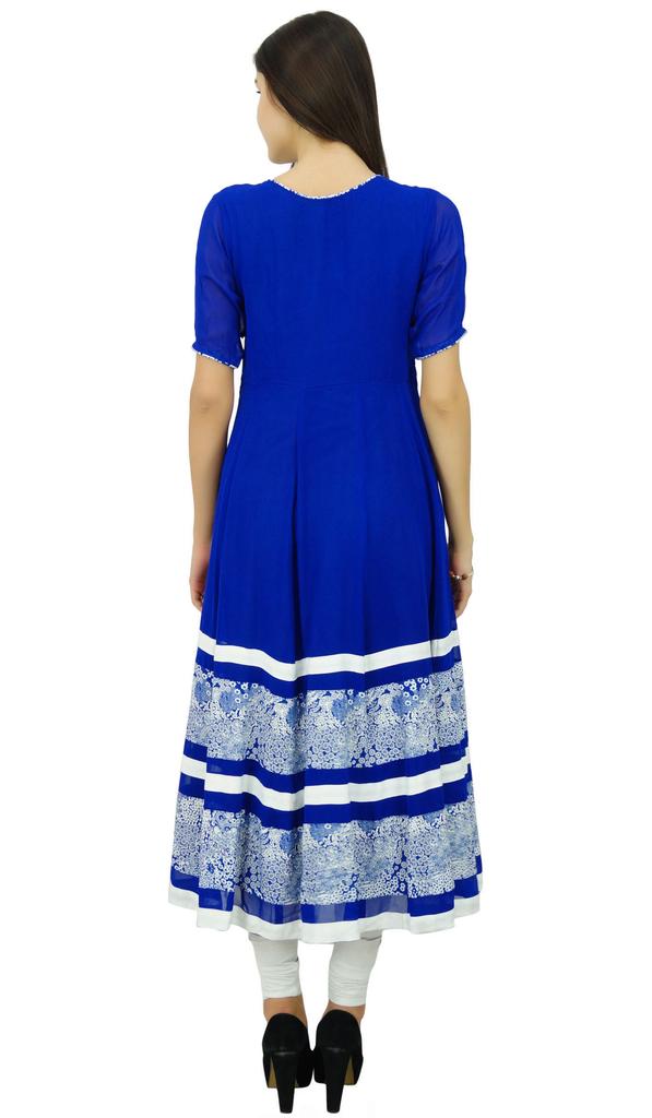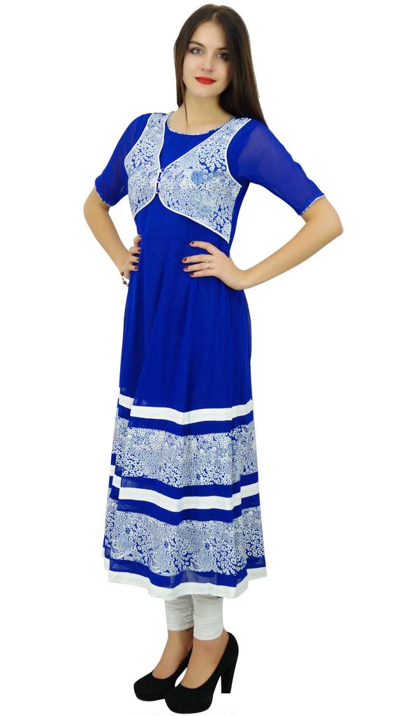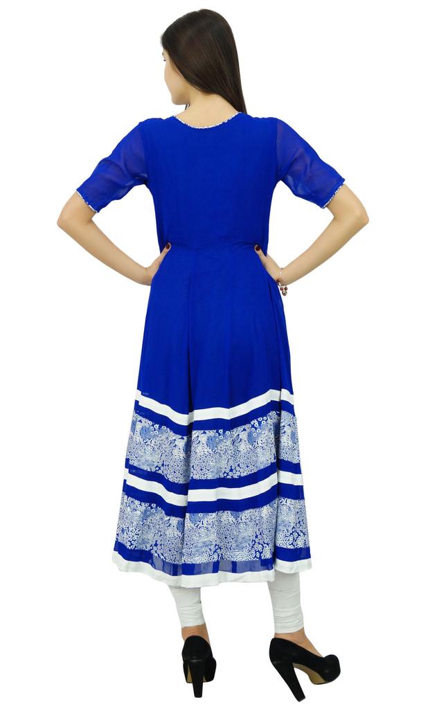 Bimba Женский длинный расклешенный Anarkali Kurti Blue Georgette Designer Kurta Indian Party Wear
