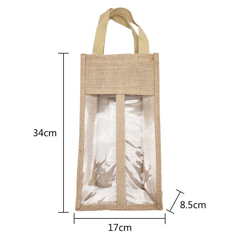 Подарочная сумка из мешковины, ткань, большая сумка для бутылки красного вина, сумка для бутылки с окном и перегородкой