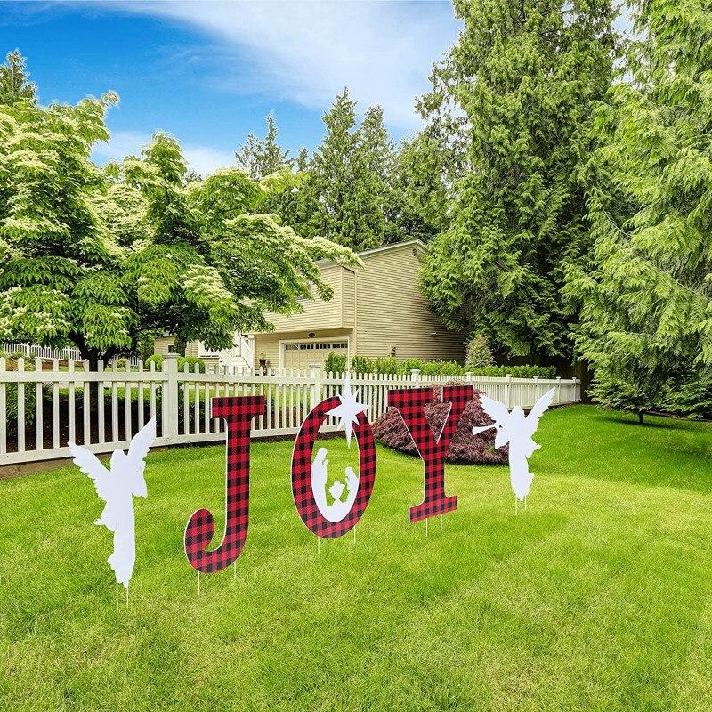 2. Размер буквы [J] составляет около 26 x 35 см, размер буквы [O] — около 30 x 38 см, размер буквы [Y] — около 35 x 35 см, а размер ангела — около 24 x 28 см.. Поставьте его во дворе и саду, чтобы сделать двор полным рождественской атмосферы.