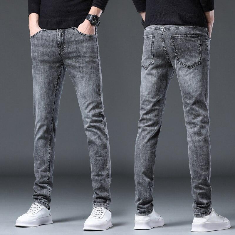 Брендовые мужские джинсы Slim Fit Узкие серые черные эластичные джинсовые брюки Повседневная дизайнерская мужская одежда Брюки Джинсы высокого качества для мужчин — купить товар онлайн с бесплатной доставкой до всему миру!