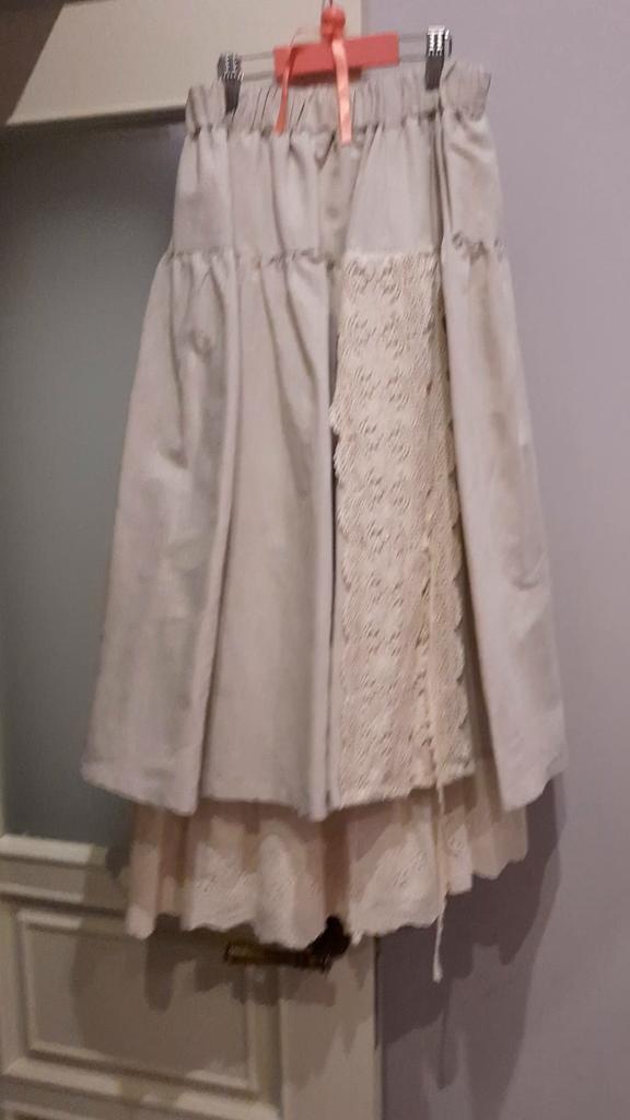 Долго сомневалась,не хотелось огорчаться при получении и дороговато казалось. Но решилась и не пожалела. Юбочка мне очень нравится: натуральная ткань, 2 вида кружева, нижяя юбочка с кружевом прошвой и пообьемнее верхняя с кружевом по бокам,широкая и надевая её сразу такая " девочка -девочка" хочется цветов и комплиментов,так себе нравишься)) СПАСИБО !!!