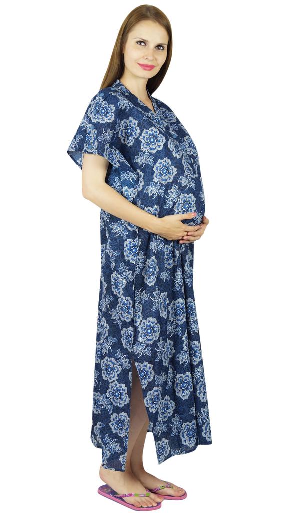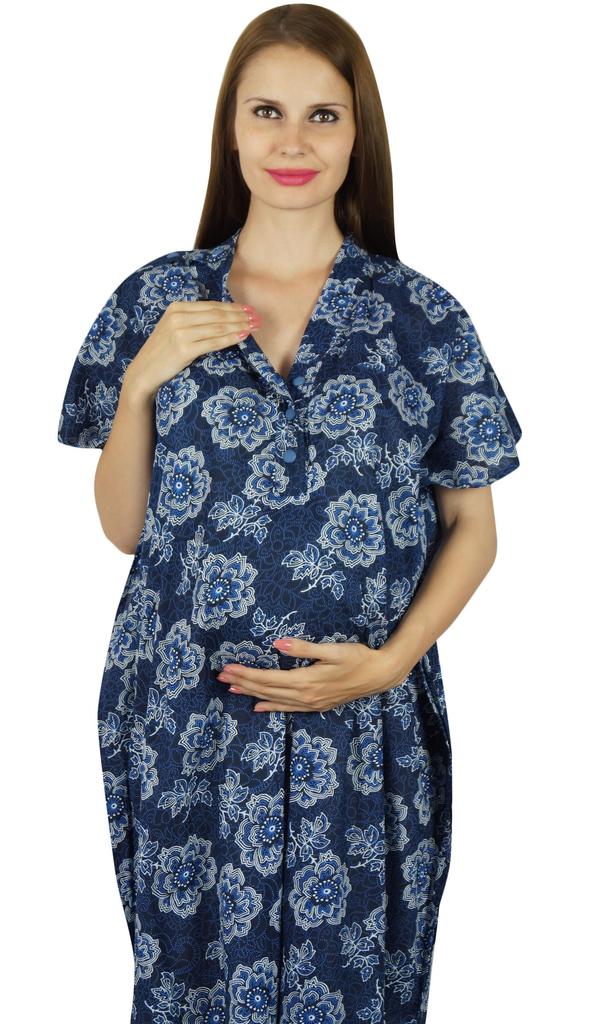 * Это красивый синий кафтан с принтом с пуговицами спереди до талии и одним боковым плечом для удобства кормления.. Также есть прорези на обоих краях для большей свободы ног при необходимости.
