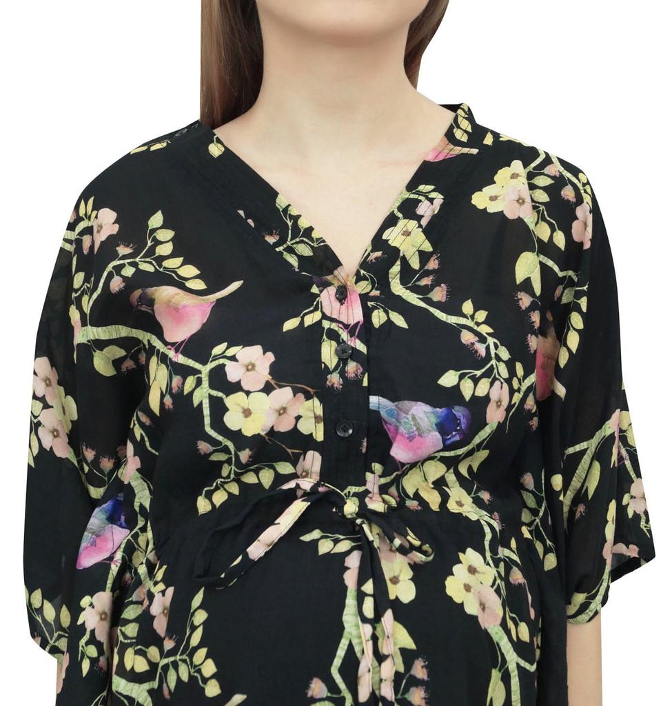 * Bimba Moms представляет новую линейку кафтанов для беременных, идеально подходящих для кормящих матерей и беременных женщин.. Это красивый кафтан для беременных с цветочным и птичьим принтом на шнурке с пуговицами спереди до талии и одним боковым плечом для удобства кормления грудью.. Также есть разрезы на обеих кромках, чтобы при необходимости обеспечить больше свободы ног.. Пуговицы спереди и на одном плече делают этот кафтан очень удобным, что делает его идеальным подарком для мам и для самих себя.. Вы можете носить его во время беременности или после рождения ребенка.