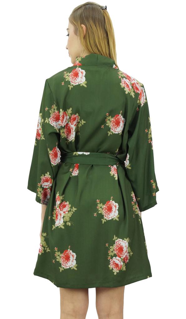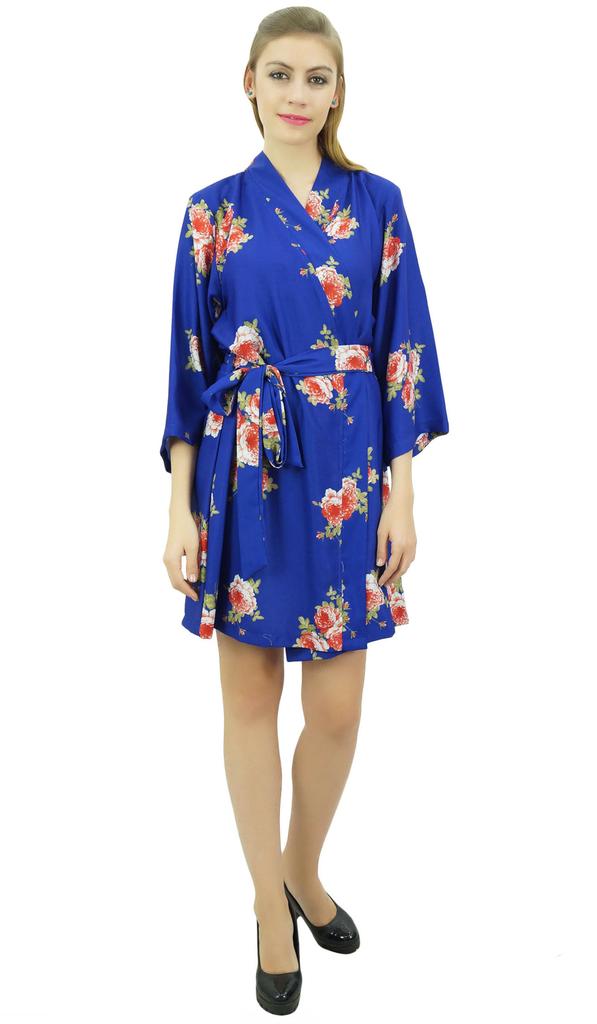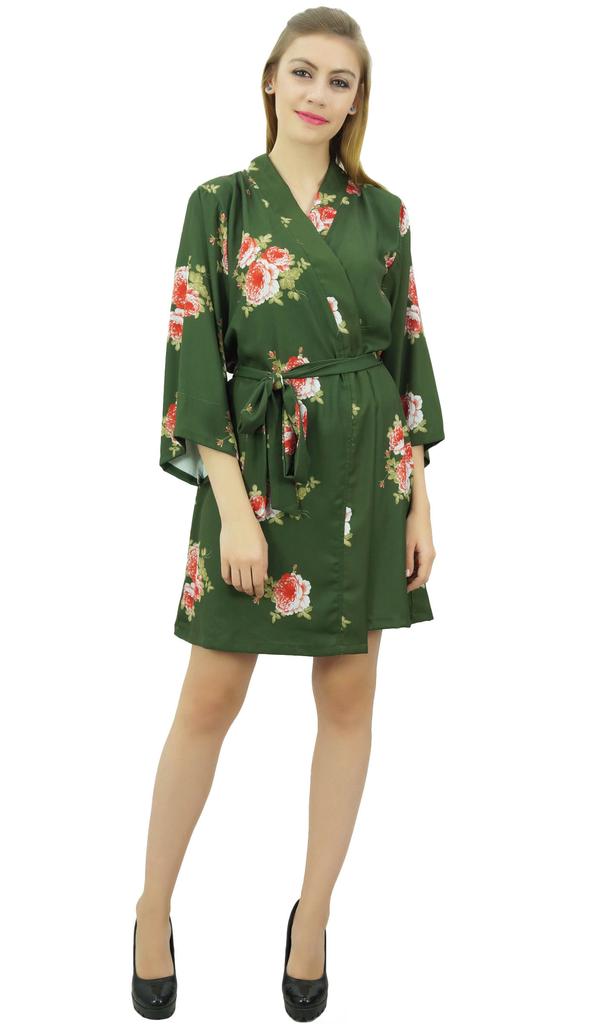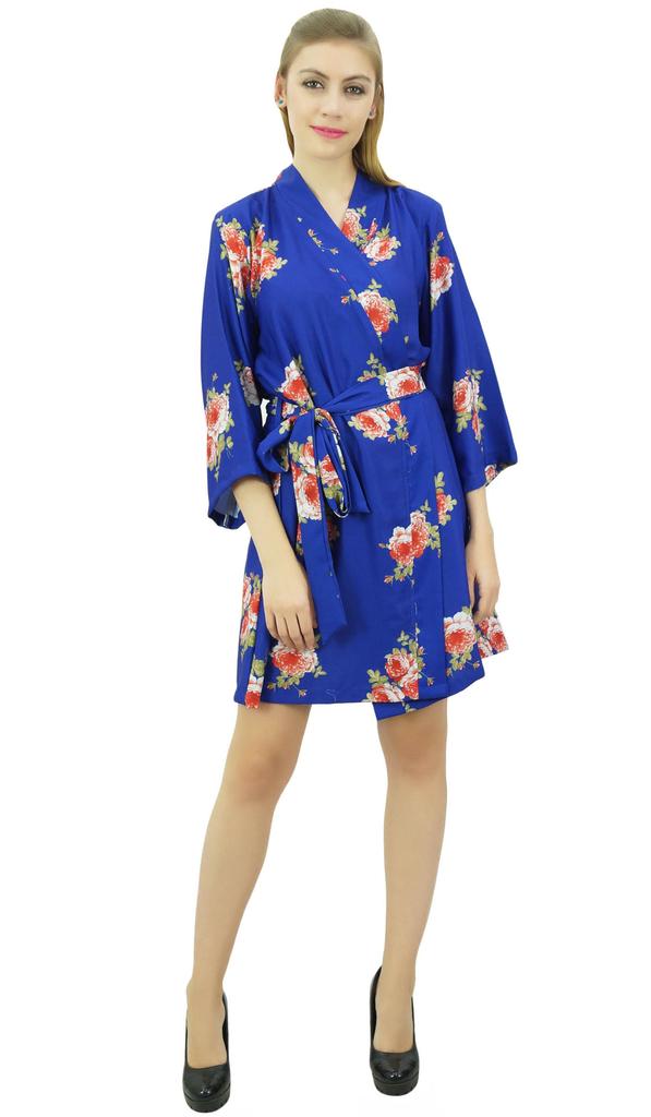 * Получите этот цветочный халат для женщин от Bimba. . Этот халат, изготовленный из ткани Moss georgette с цветочным принтом, имеет 3 4 рукава кимоно и пояс.. V-образный вырез, 3 четвертых рукава и узел на переде внахлест.. Перед этим халатом, изготовленным из ткани Moss Georgette, которая обеспечивает ощущение мягкости и мгновенного комфорта при ношении, просто невозможно устоять.