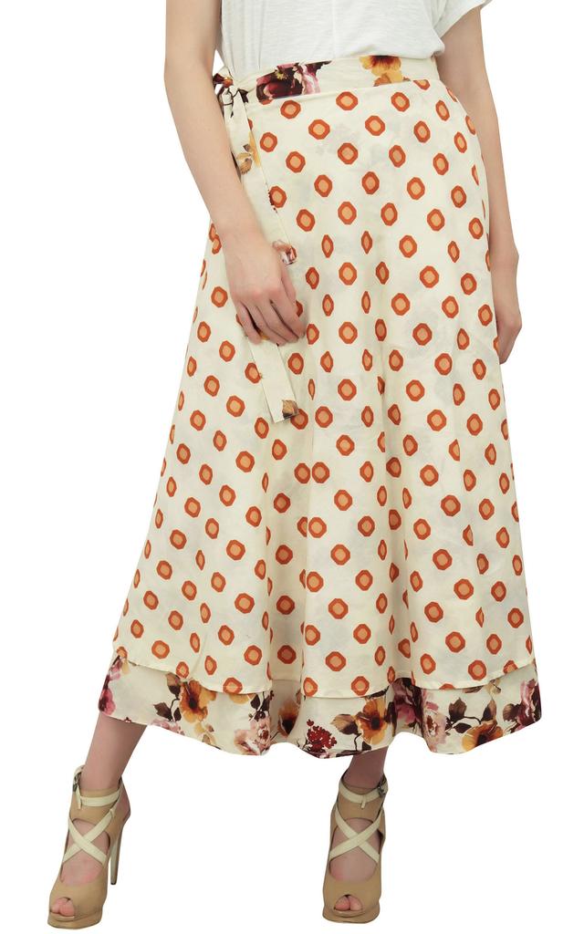 Phagun Двусторонняя хлопковая юбка-халат кремового цвета с цветочным принтом, двухслойная, летняя
