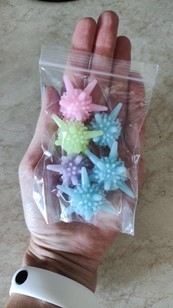 Поставлю 5 звёзд чтобы все видели мой отзыв. Не в коем случае не покупайте у этого продавца, он обманщик. В описание товара указывает 6 шариков, по факту один ,и маленький. Будьте внимательней, продавец аферист!!! Диаметр шарика без шипов 1,2 см