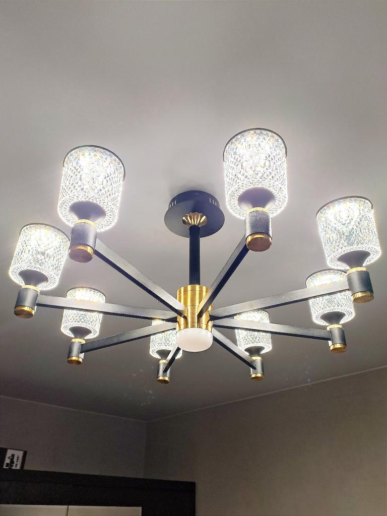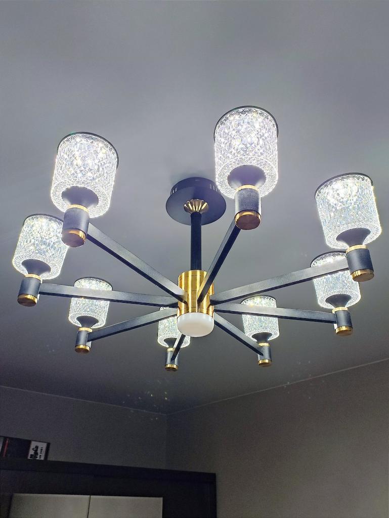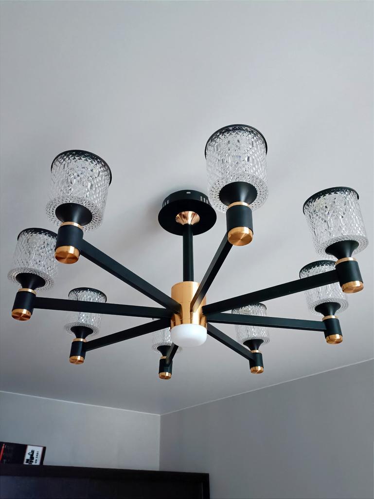 Как же хороша эта люстра! Влюбилась в нее, как только увидела на joom 😍 Стильная, современная, выглядит богато, за счет граней на плафонах красиво переливается при включенном свете. Забегая вперед скажу: люстра оправдала все мои ожидания! Она ровно такая, как на картинке продавца, и в готовом интерьере смотрится роскошно! Доставка Почтой России заняла ровно месяц. И еще 4 дня до отправки продавец собирал заказ. Коробка была потрёпанная, при движении был слышен шум непонятного происхождения, поэтому я попросила сотрудника Почты вскрыть посылку для проверки. К счастью, все элементы были целыми, в частности пластиковые плафоны. Кстати, я думала, что плафоны из стекла. Но нет, это прозрачный пластик. Полная энтузиазма я отправилась с Почты домой собирать люстру вся с ног до головы в крошках пенопласта. Потом и вся квартира была засыпана крошащимся пенопластом… будьте готовы. Инструкция к люстре НЕ прилагается. Потратили на сборку вечер. Не скажу, что все прошло гладко, где-то пришлось попыхтеть, посоображать. С проводами работал супруг, здесь безусловно нужны хотя бы элементарные навыки и знания. Устанавливал так же супруг. Крепление, подключение - все стандартное. Кстати, у цепочки для регулирования высоты есть даже свой черный бархатный чехольчик, чтобы спрятать ее и провод. К комплектации люстры и качеству комплектующих вообще никаких претензий, прям добротный товар. А собранная люстра выглядит так, словно куплена в крутом салоне света за много тыщ денег. Люстра светодиодная, часть диодов белая, другая часть - желтая, что обеспечивает холодное и теплое освещение соответственно. У люстры три режима свечения, переключается выключателем (см. видео): 1. Горят только белые диоды, свет холодный 2. Горят только желтые диоды, свет теплый 3. Горят все диоды, и белые, и желтые. Ярко, светло. Температура средняя. Комната 12 квадратов, у люстры 8 плафонов. Когда горят все диоды, комната залита светом, то есть эта люстра однозначно подойдет и для бОльшего помещения (в характеристиках к аналогичной люстре видела, что 8 плафонов рассчитаны на площадь 15-18 м2) Когда мне не нужно столько света, я включаю режим «теплый свет» и его достаточно. Мне очень нравится, что у люстры несколько режимов и можно регулировать яркость, удобно! Как итог: шикарная, качественная люстра, стоит каждого потраченного рубля. В магазинах такие люстры стоят в разы дороже (мониторила, знаю). Спасибо продавцу и joom. Рекомендую. ___________ inst @tesyomkin_blog