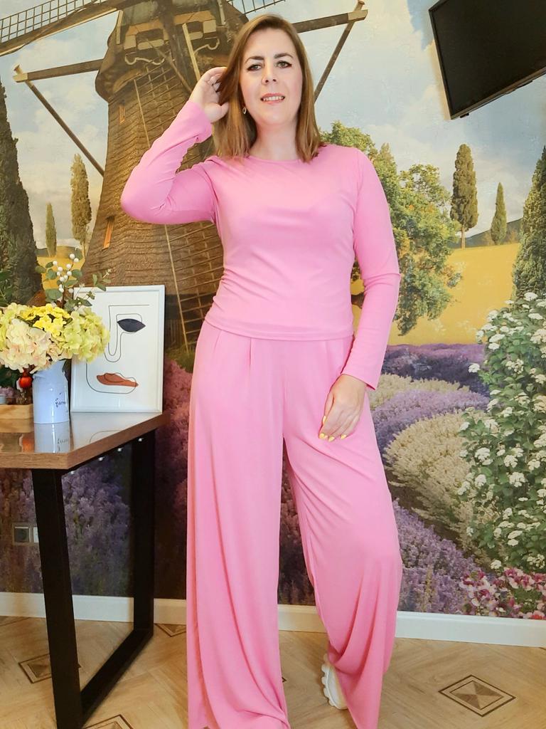 Получила замечательный костюм в размере L.Мои параметры рост 163,86-65-86.Ткань очень приятная к телу,прям шелковистая,все шофчики ровные хорошо обработаны,фабричный пошив,приятный цвет.Кофта идёт приталенная,размеры кофты длина 50 см,под грудью 43см.Брюки длиной 104см,на меня длинные,резинка на брючках 5 см,если ее подвернуть,длина как раз в пол,на брюках защипы с двух сторон,широкие,ширина брюк 33 см.В талии брюки 35 см,на мою талию чуть свободноваты.Есои б взяла на размер меньше,чтоб были покороче и в талии чуть по меньше,то кофта была бы маленькой,за счёт приталенного фасона,а вообще я довольна,на теле невесомый, очень комфортно в нем.