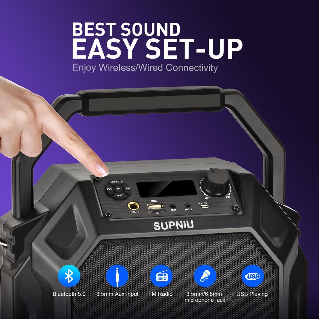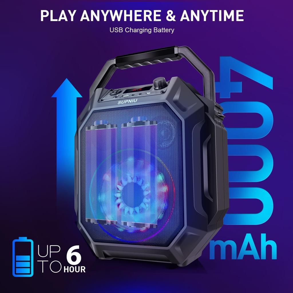 [Мощные динамики Bluetooth Wireless] - высокое качество кристально чистого звука: Выходная мощность 70 Вт с 6,5 полнодиапазонным динамиком и 2,5-дюймовым ВЧ-динамиком обеспечивают мощный стерео и ударный басовый звук на вашей вечеринке.4000mAh литиевая аккумуляторная батарея высокой емкости гарантирует вашу 6-8 часов непрерывной вечеринки.