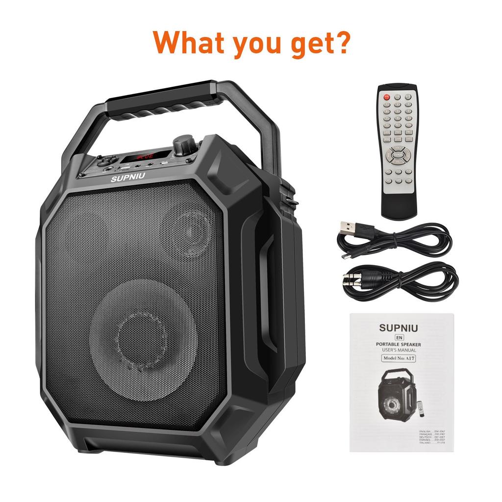 [Громкий динамик Bluetooth] - Многофункциональный беспроводной динамик: Встроенная антенна для радиолюбителей, заставляющая вас следить за новостями, где бы вы ни находились; Разъем AUX обеспечивает широкий спектр возможностей подключения от телефонов, столов, смарт-телевизора, ноутбука, MP3 & MP4 и т. Д.. Поддержка подключения микрофона и записи музыки. Встроенный слот для карт TF дает вам больше возможностей воспроизведения.