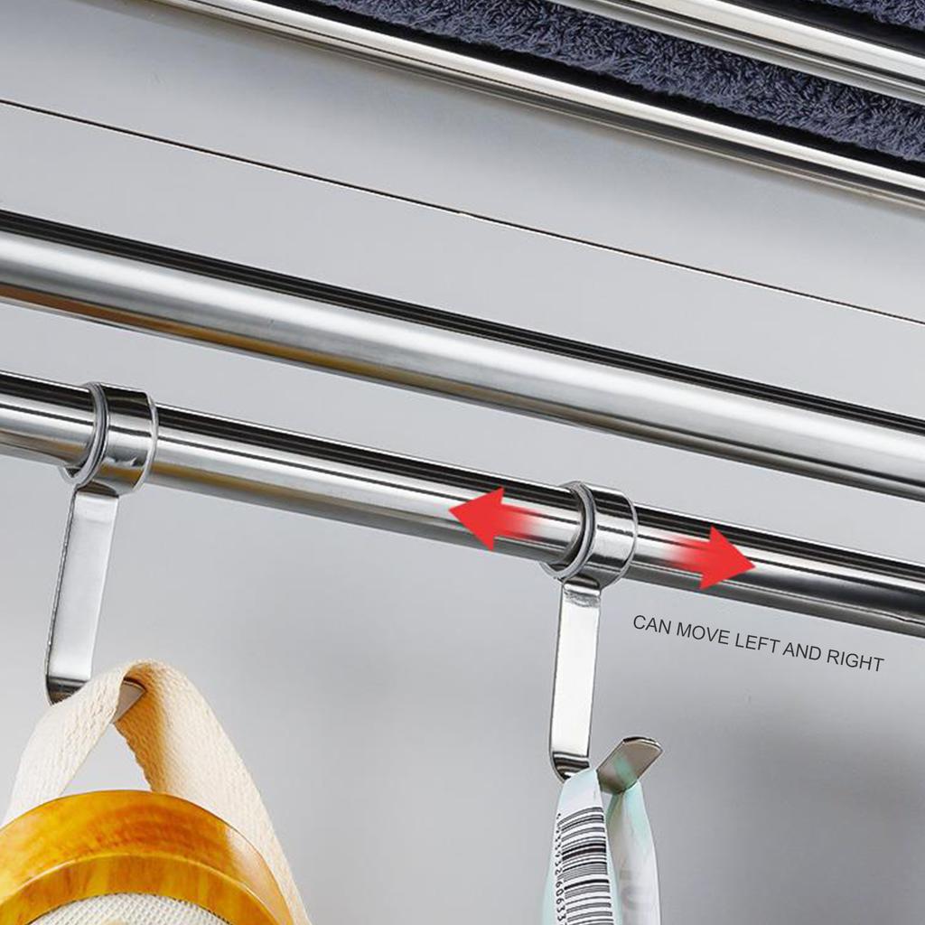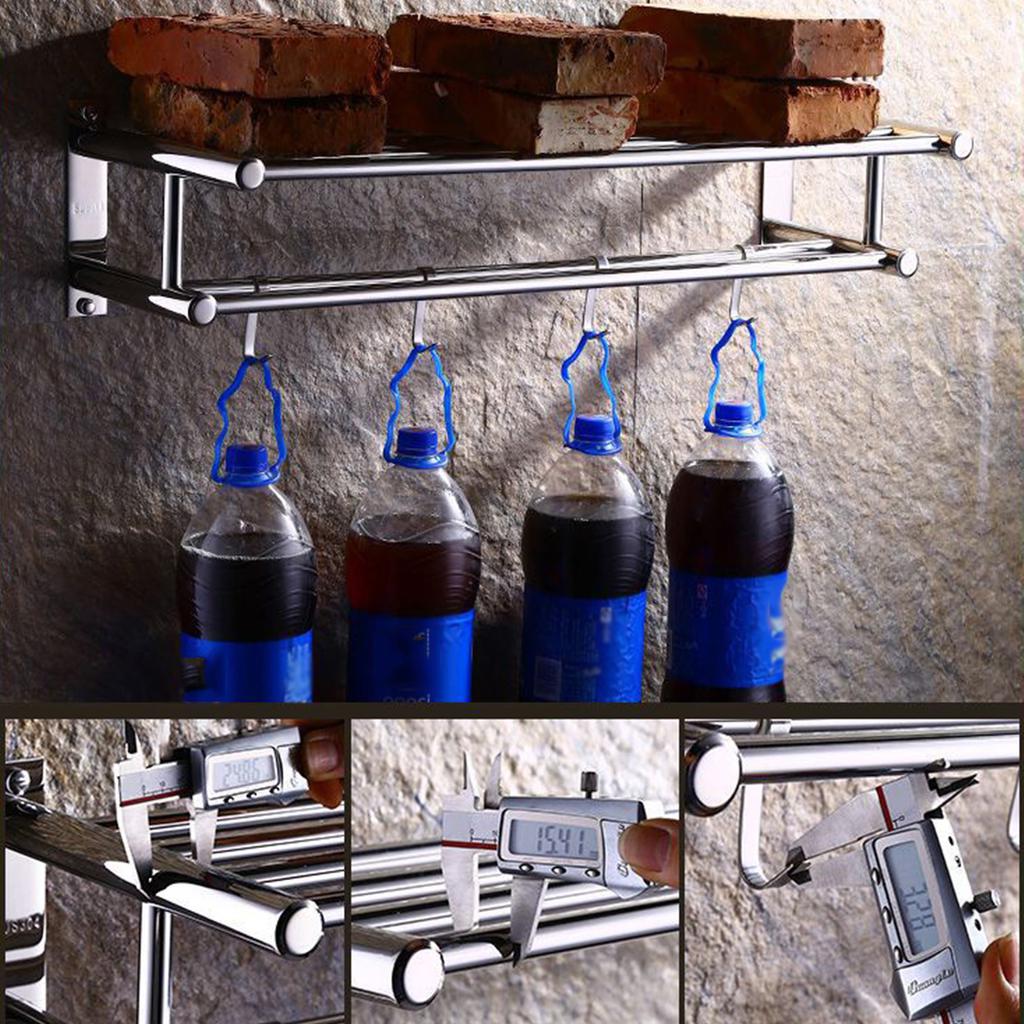 Вешалка для банных полотенец со конструкцией из нержавеющей стали будет противостоять ржавчине и коррозии при повседневном использовании, гладкий край может предотвратить повреждение от царапин. Настенный держатель для полотенец легко помещается в вашем шкафу, спальне, ванной комнате, кухне или в любых местах, которые вам нужны, чтобы ваш дом выглядел более чистым и аккуратным.