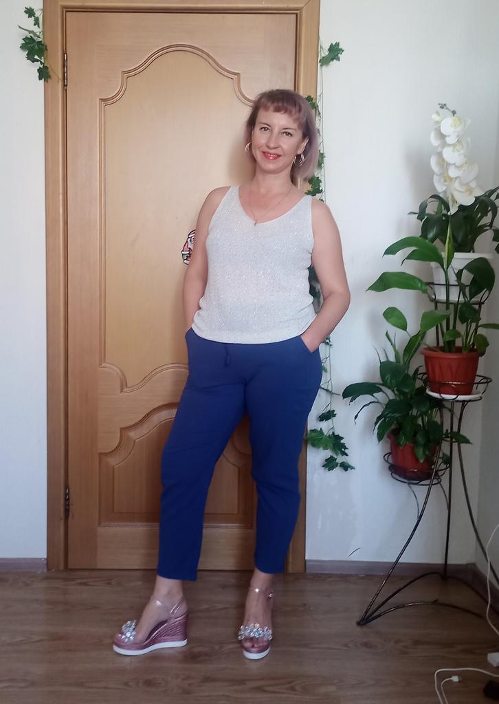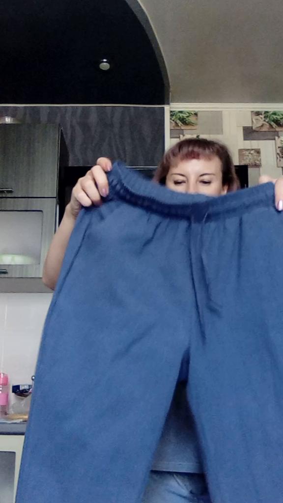 Хорошие штанишки на лето 🌼🌺🌼 Штаны прямые, внизу зауженные (имеются вытачки),на талии резинка и шнуровка, два боковых кармана, длина по щиколотку.☝️ Материал хлопок 💯, плотный, мягкий, приятный к телу.Не просвечивают,не тянутся совсем.☝️ На параметры ОТ 75, ОБ 98, рост 1, 65 я взяла XL.☝️ Тут я немного ошиблась, размер нужно было брать больше.Я хотела, чтобы они были более свободными,а так они больше облигают, выглядят как гамаши 😁 Носить можно, конечно,но скорее всего отдам их дочери.Так как после стирки,я уверена, что они ещё сядут. Цвет я взяла синий, выглядят как на фото продавца 🙂👍 Мои замеры на XL: ОТ 66-80 см ОБ 108 см Длина 89 см. Качество хорошее 👍💯: швы ровные, аккуратные, дефектов не имеют. К покупке рекомендую 🤗,отличный вариант на лето 🌼🌺🌼