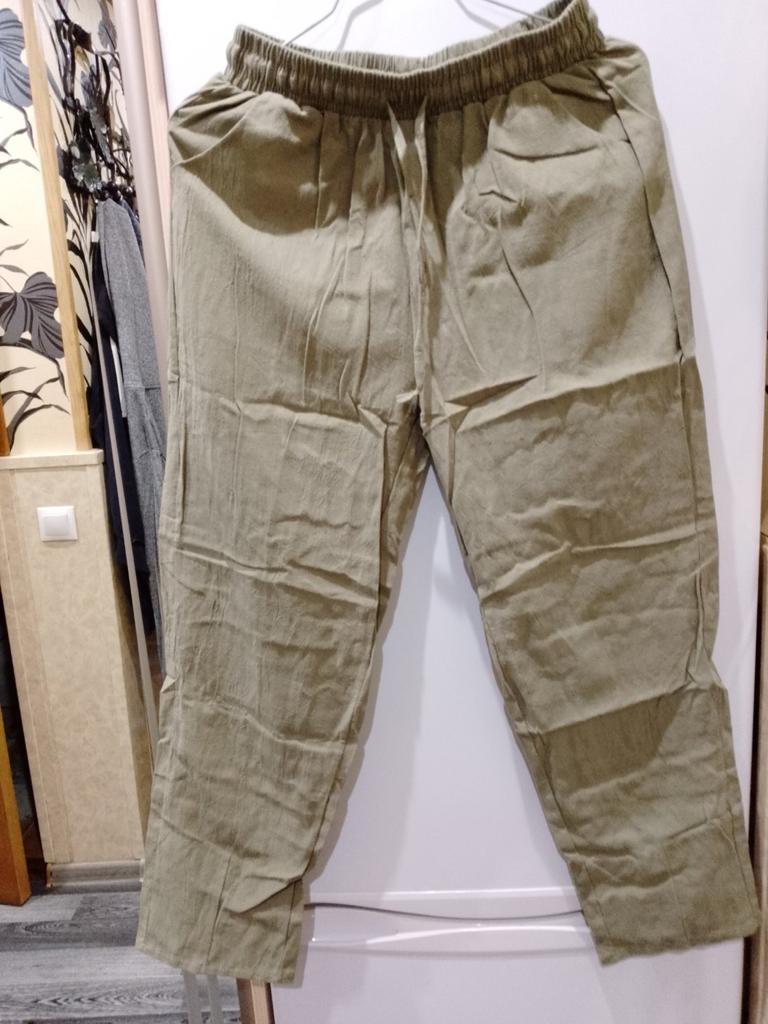Доброе утро !!! Хочу рассказать вам о брюках 1 цвет не соответствует такое ощущение что они уже выстеранны, цвет не такой яркий как у прадовца представлен на фото 2 при стирке Руками в чуть теплой воде очень сильно окрасили воду ,при полоскание в холодной водой окрасили воду . После стирки не значительно подсели . 3 по размеру 2xl на русский 52-54 сели по фигуре не свободно ,посадка не низкая ,ткань к телу приятная ,удобно ходить не чего не давит и нет дискомфорта ,карманы есть и достаточно удобные . Так как ткань натуральная при носке коленки сильно вытягиваются и сами брюки становяться чуть свободнее . В жаркую погоду комфортно . Фото не грузит по какой-то причине . По доставке пришли в указанное время примерно за 3,-3,5 недели .