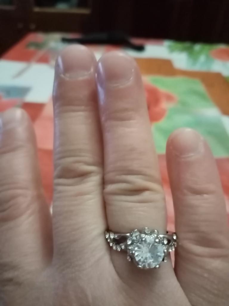 Колечко очень красивое, под серебро, блестит ослепительно, с большим кристаллом посередине и маленькими по бокам. На мой размер 17см подошло впритык, заказала 6ой размер, до этого заказывала 7 ой но другое кольцо, было свободно, того гляди соскользнет. Рекомендую к покупке, спасибо продавцу и Джум.