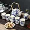 1 чайник, 6 чашек, большой чайник, поднос для чая, керамический сине-белый фарфоровый горшок с кунг-фу, простой бытовой чайный сервиз