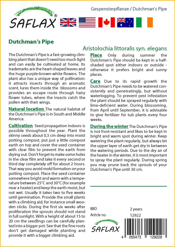 Голландская трубка не морозостойка и любит зимой содержаться в светлом и теплом месте.. Продолжайте регулярно поливать растение, но всегда давайте верхнему слою земли высохнуть между периодами полива.. Из-за сухости воздуха обогревателя зимой самое главное регулярно опрыскивать растение. Весной вы можете обрезать ростки вашей голландской трубки до 30 см.