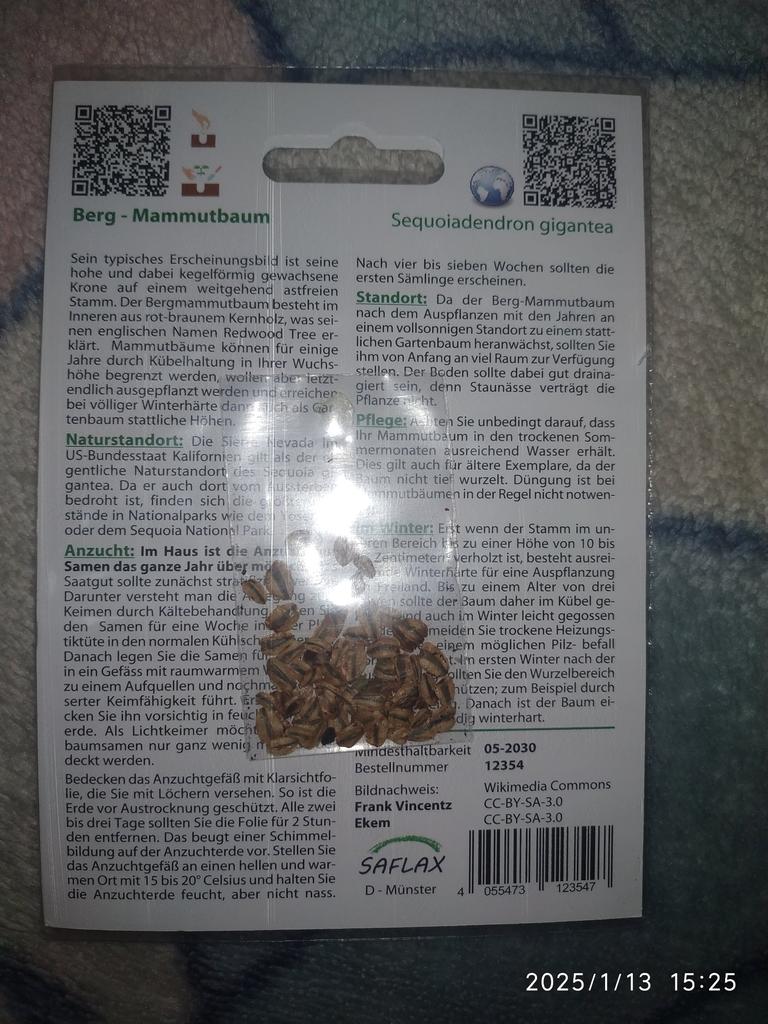 Размножение семян в помещении возможно в течение всего года.. Семена желательно сначала стратифицировать, то есть стимулировать и подготовить семена с помощью обработки холодом.. Для этого вы должны держать его запечатанным в пластиковом пакете в обычном холодильнике около недели.. После этого поместите семена еще на двое суток в теплую воду для затравки, чтобы набухание еще больше повысило их всхожесть. Теперь вы можете аккуратно вдавить семена во влажный горшечный грунт.. В качестве легкого проращивателя семена гигантского красного дерева требуют лишь небольшого количества компостной земли сверху.. Накройте емкость с семенами прозрачной пленкой, чтобы земля не пересыхала, но не забудьте проделать несколько отверстий в прозрачной пленке и снимайте ее каждый второй или третий день полностью на 2 часа.. Таким образом вы предотвратите образование плесени на почвенном компосте.. Поместите контейнер с семенами в светлое и теплое место с температурой от 15°C до 20°C и держите землю влажной, но не мокрой.. Вам нужно немного терпения для прорастания, но в течение четырех-семи недель должны появиться первые всходы.