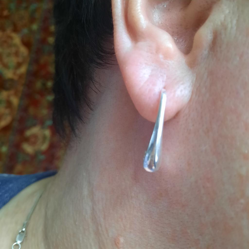 Классные ,, Капельки,,!! Очень понравились! Действительно, как капельки воды. Ощутимые в руках, тяжеловатые, но в мочке уха висят спокойно. Главное нет швензы, которая постоянно растягивается, и не мешают если голова лежит на боку. Но есть небольшой неприятный момент: толстоватая дужка которая проходит сквозь мочку уха. Сначала этого как бы не заметно, но позже начинаешь чувствовать дискомфорт. Может стоит производителю делать немного тоньше саму петлю? Серьги замечательные, но дужка толстовата....