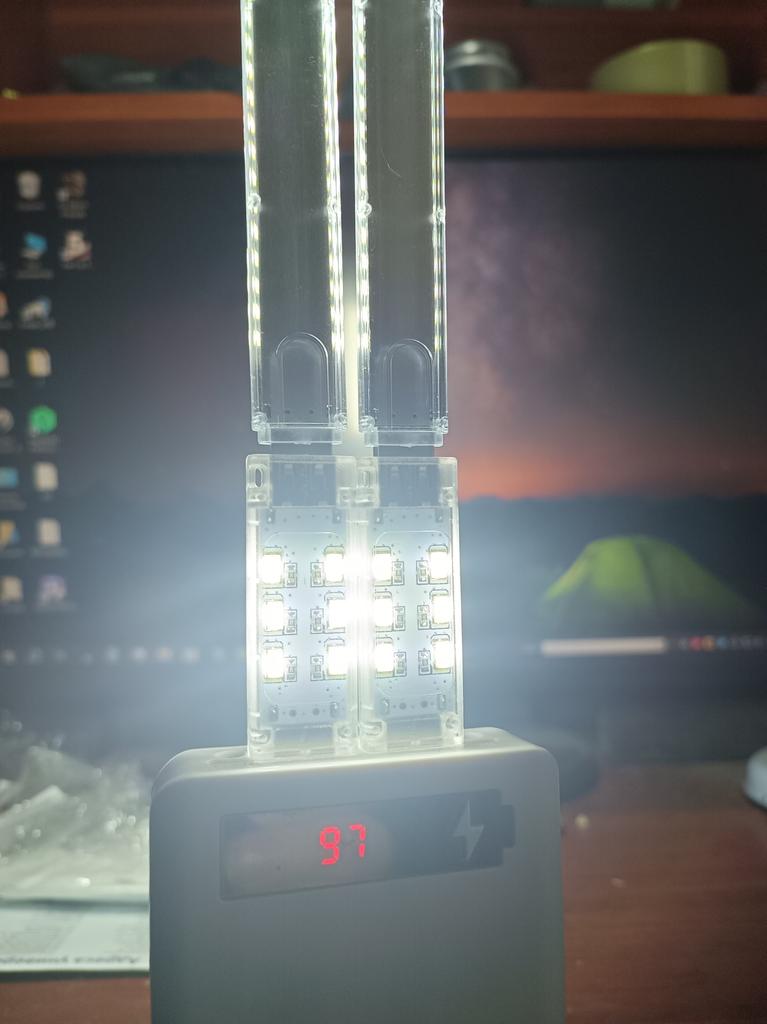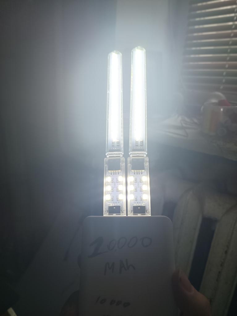 Лампочки не яркие, 12 штук, по 6 с каждой стороны, но благодаря тому что есть возможность конструировать дальше, можно увеличить количество света за счёт дополнительного USB порта.