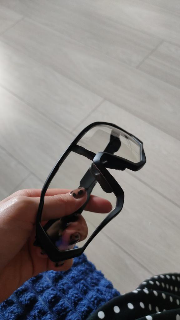 Заказываю эти очки уже вторые. Для сравнения прикрепила фото первых белых, у них фотохромные линзы. Езжу в них уже два года в любое время дня и ночи, всё прекрасно видно и нет бликов (езжу на велосипеде). А вторые черные, линзы прозрачные совсем, вышла на балкон, посмотреть на солнце, защиты нет совсем. В целом, очки приехали целые в одной общей посылке, и достаточно быстро.