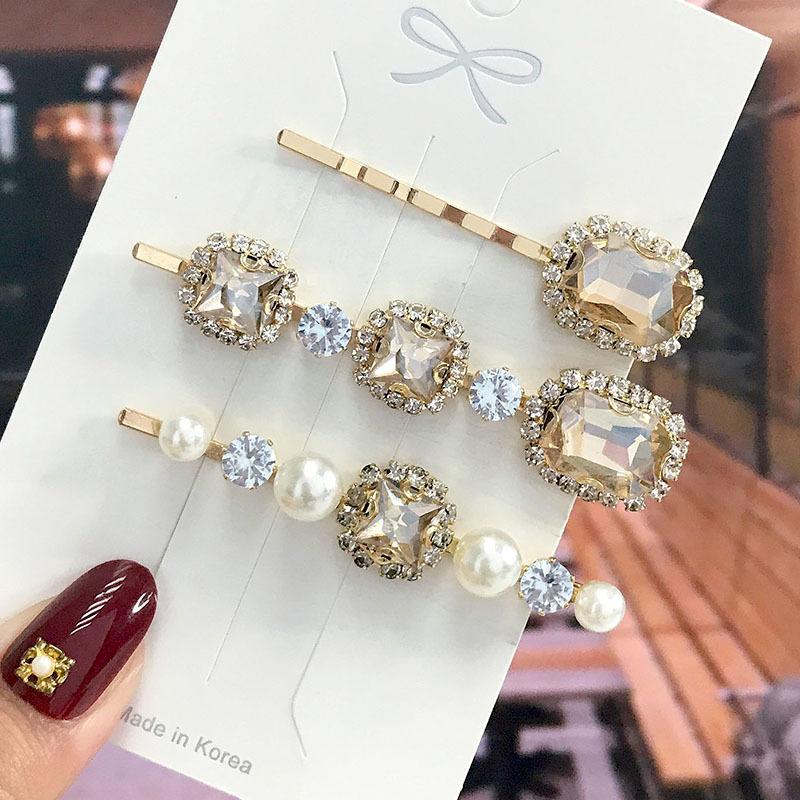 Модные 2022, роскошные женские заколки с кристаллами и жемчугом, заколки для волос в форме капли воды, заколки для волос, аксессуары для волос с геометрическим рисунком, заколки для волос, головные уборы