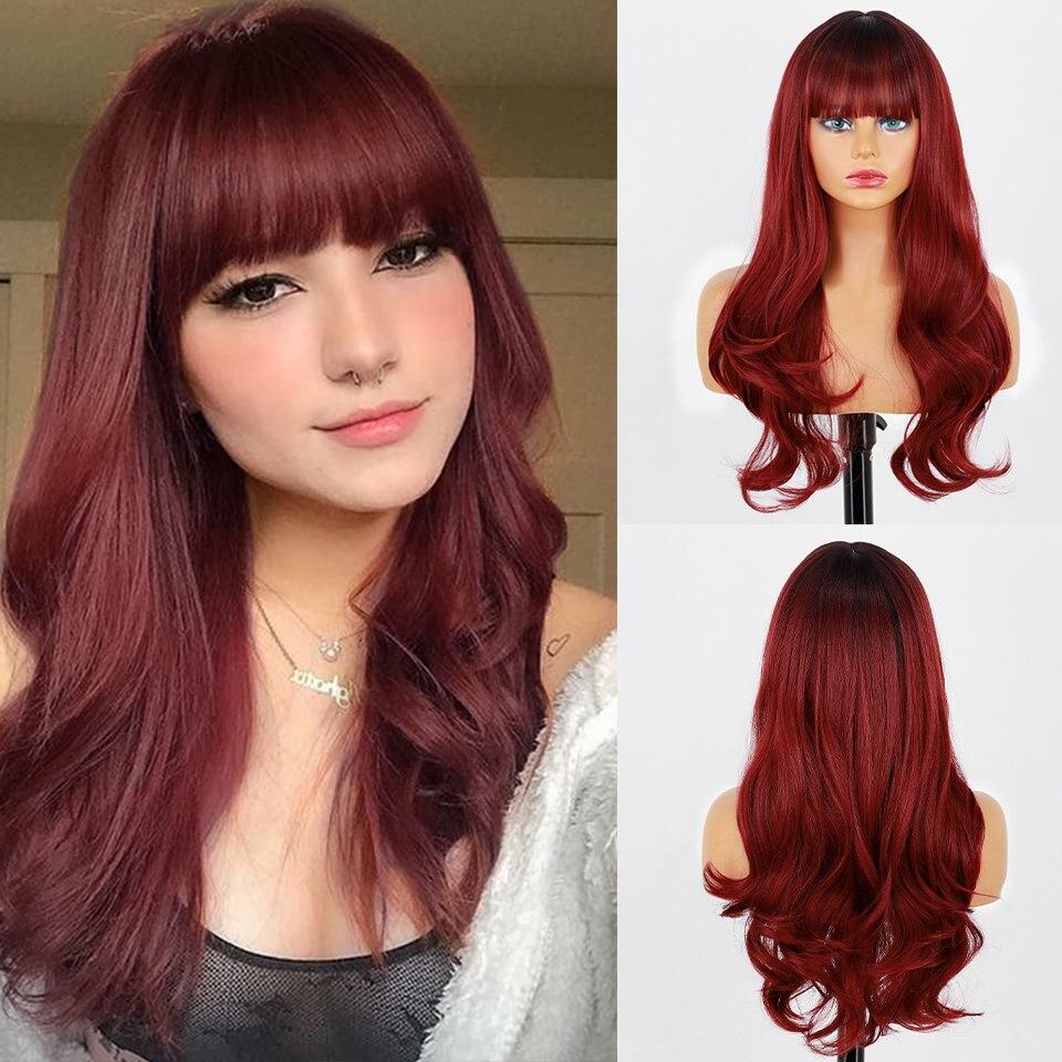 Красный волнистый парик с челкой, как ваши собственные волосы в повседневной жизни