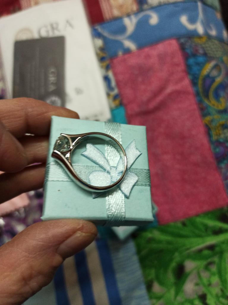 Очень красивое кольцо , не бижутерия, серебро 925 пробы. Камень очень хорош, сверкает бесподобно, на внутренней стороны кольца две пробы- на серебро и на муассонит. Само кольцо очень стильное, все отполированное. Я уже присмотрела к нему серьги и кулончик, закажу.Большое русское мерси продавцу и Джуму за быструю доставку. Да, забыла сказать -на кольцо и муассонит имеется сертификат и черная карта.