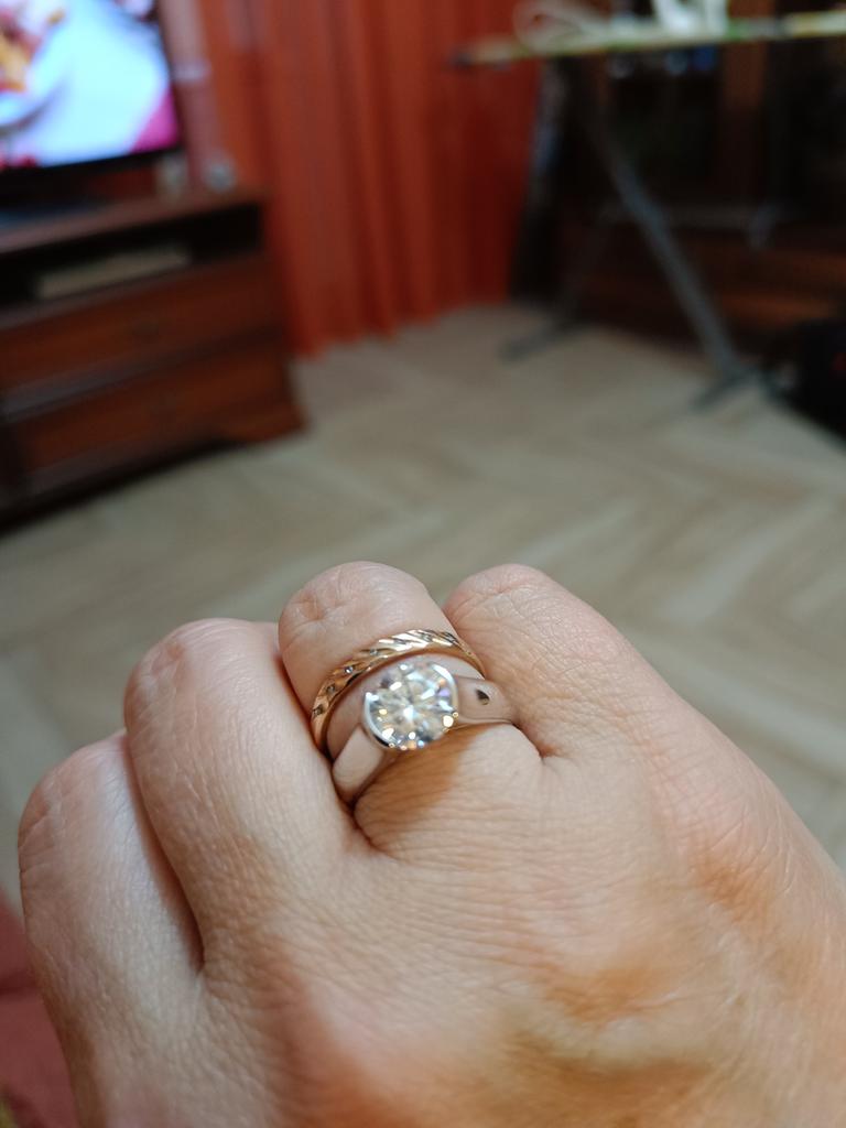 Я счастлива, что не прошла мимо такого очаровательного перстня. Хотя, поначалу, очень сильно сомневалась в этой покупке, но абсолютно напрасно - сел, как влитой и сияет на вспышке, как настоящий брюлик! Даже без солнца играет огранка - глаз не оторвать! Сама себе не верю и завидую!🤭 Изначально меня пугала высота изделия, но с первых же секунд примерки стало понятно, что носить удобно, а камушек надёжно закреплëн и мою одежду портить не будет, так как кольцо без изъянов. Есть сертификат качества и пластиковая карта, по которой можно пробить всю инфу именно об этом муассаните. Даже какие-то две пробы стоят🥳 Спасибо, Джум!🔥💎🔥