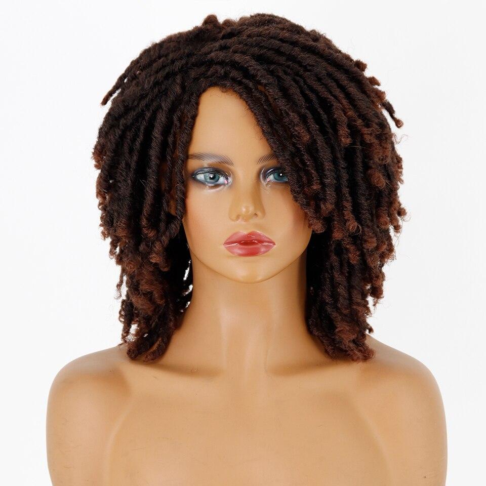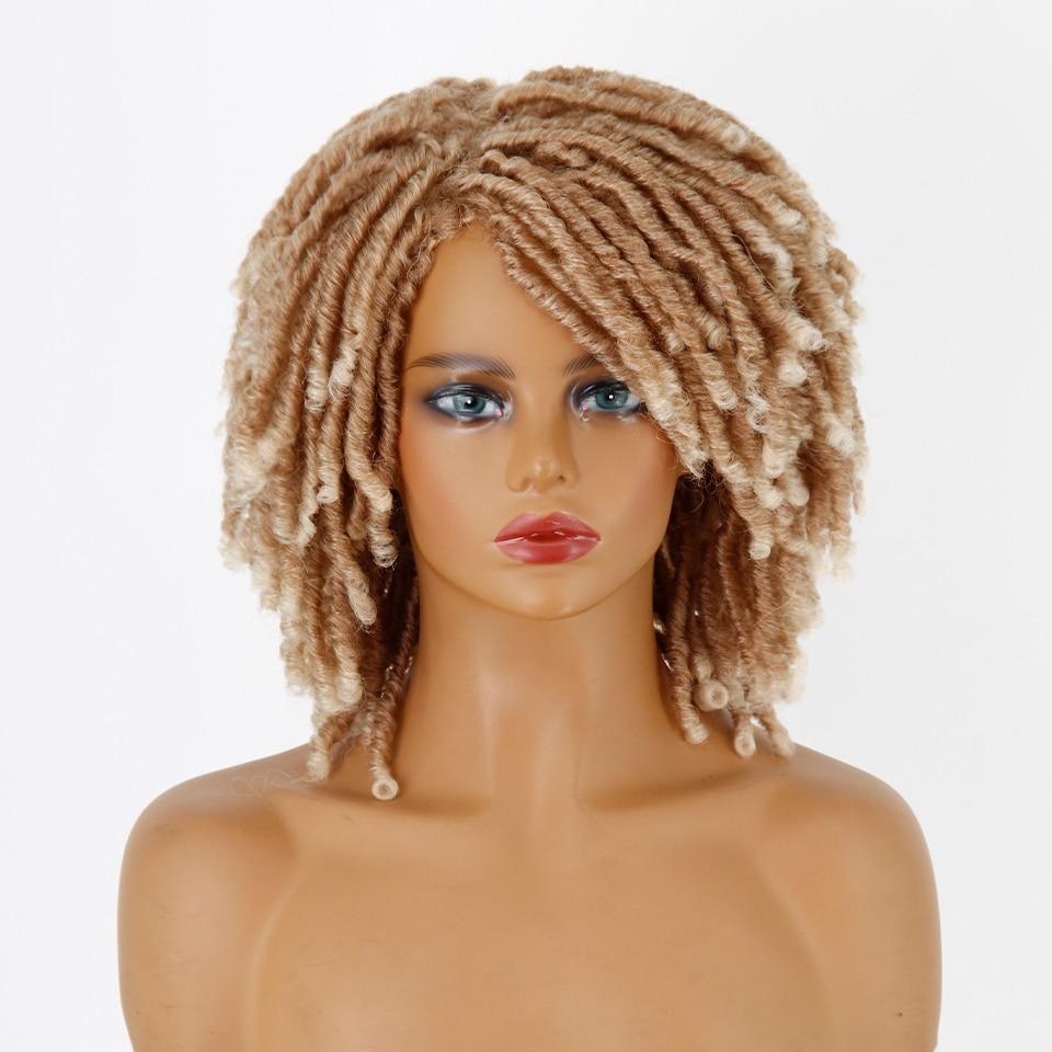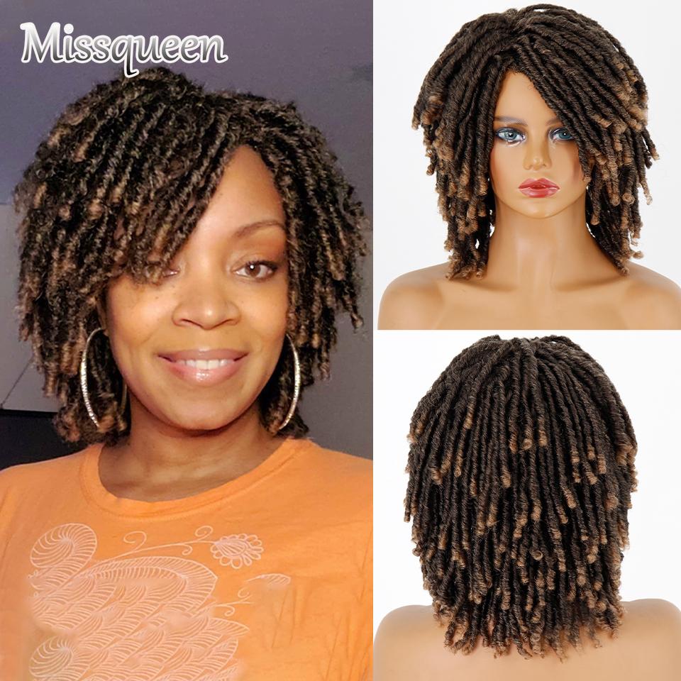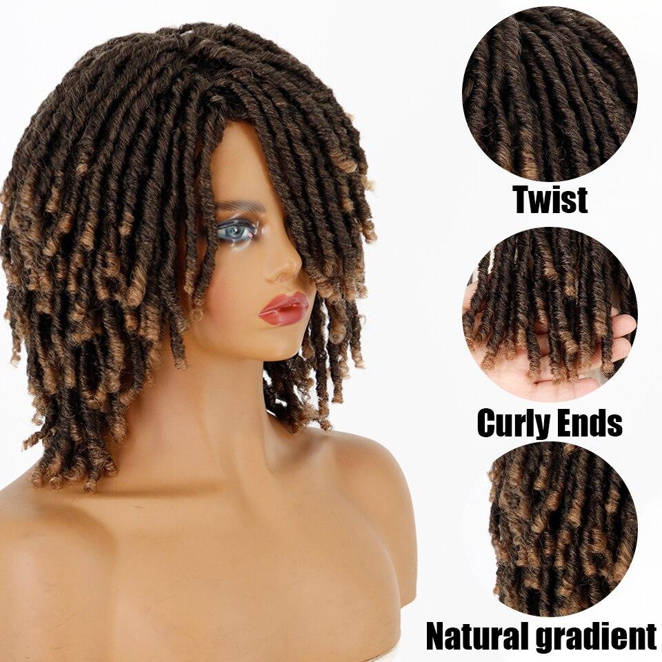 MISSQUEEN Парик Короткий вьющийся плетеный парик Подходит для чернокожих женщин Боковая часть Синтетический витой парик с челкой Боковая часть Градиент Коричневый